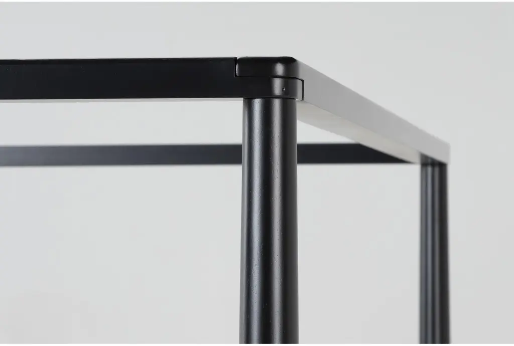 Transform your bedroom with the Austen Black Full Side & Footboard Storage Wood Platform Canopy Bedroom Set. This traditional set features a striking four-poster canopy bed that brings a sense of grandeur to any space. Crafted from oak veneer and solid rubberwood, this set combines durability and style for a timeless appeal.