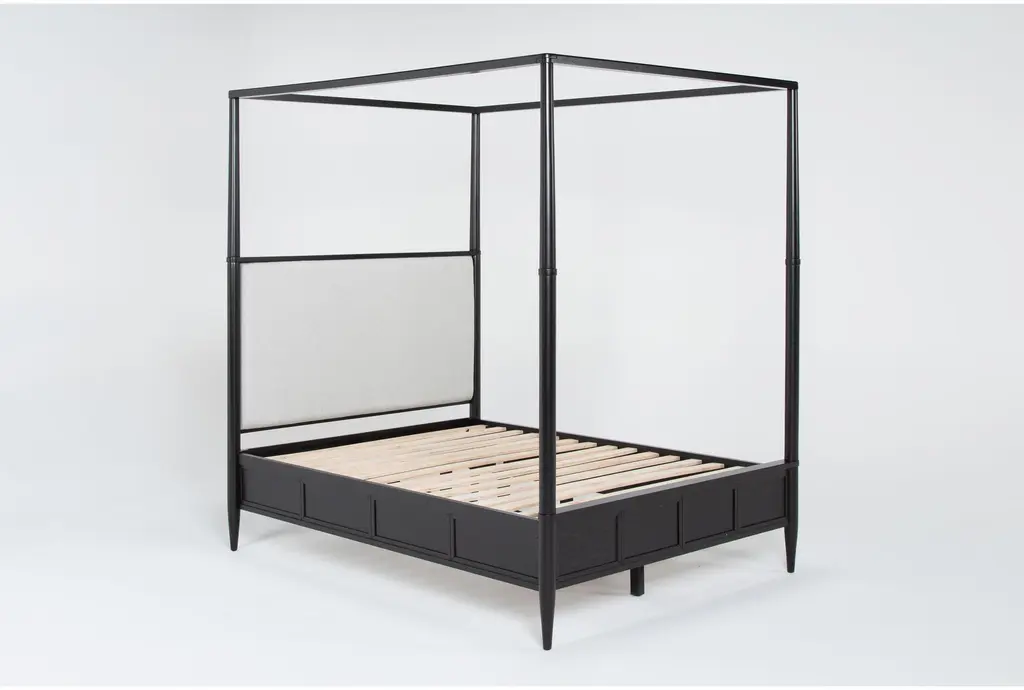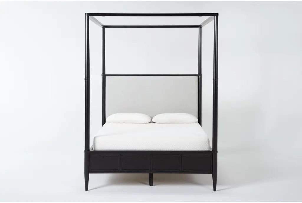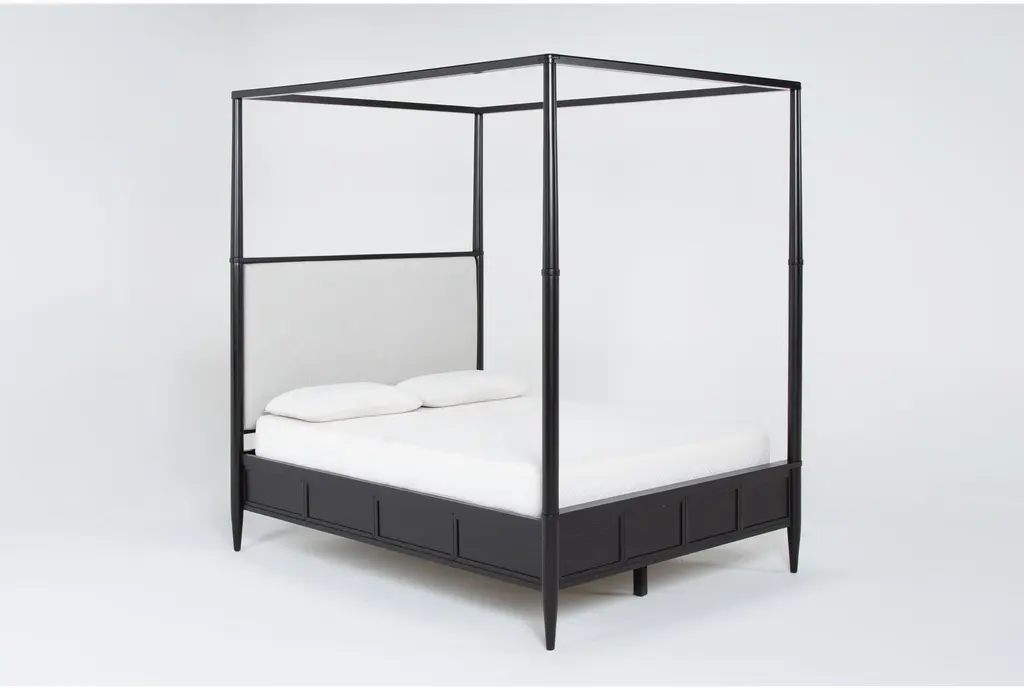 Austen Black King Wood & Upholstered Platform Canopy Bed | Adjustable Base Compatible | Poster