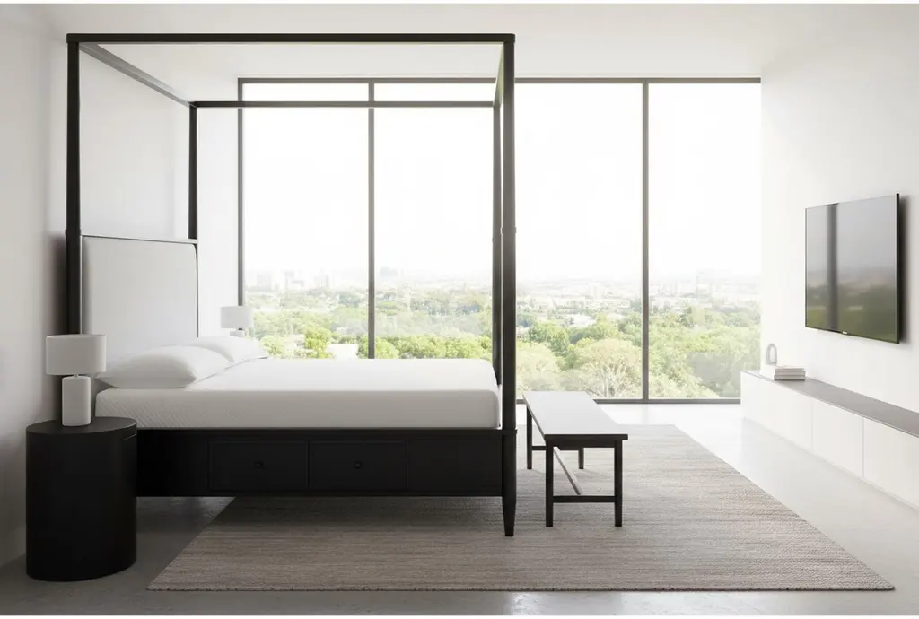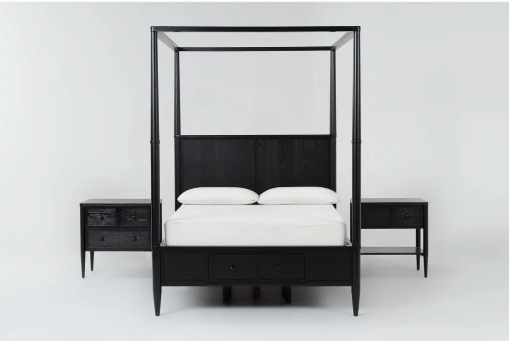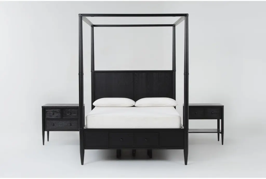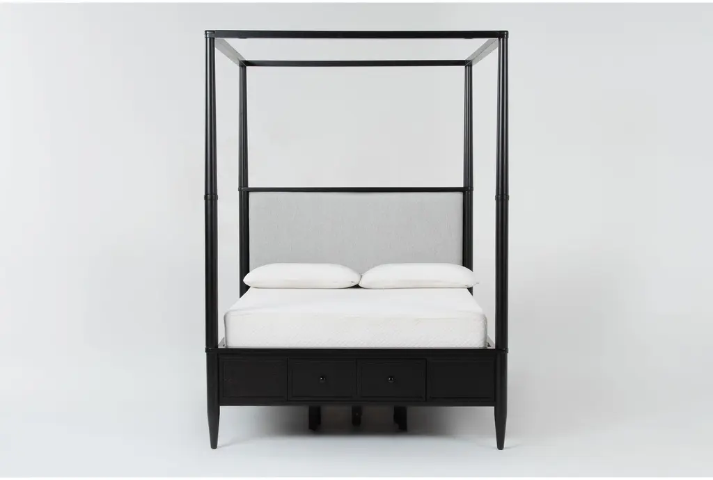 Austen Black King Wood & Upholstered Platform Canopy Bed With Footboard Storage