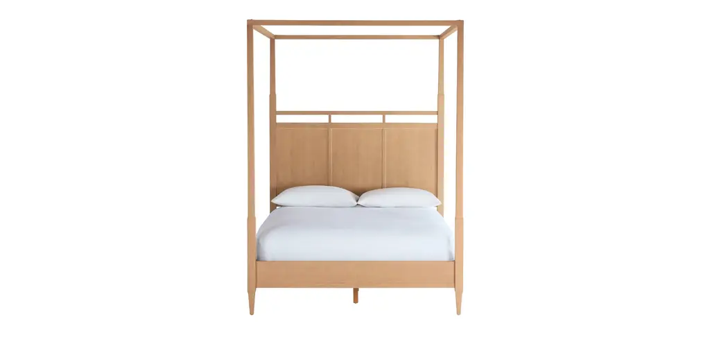 The Austen White California King Wood Platform Canopy Bed with Side Storage is a perfect blend of functionality and style. Crafted from oak veneer and solid rubberwood, its traditional design brings timeless charm to any bedroom. The added storage drawers and canopy feature make it an ideal choice for both practicality and aesthetics.