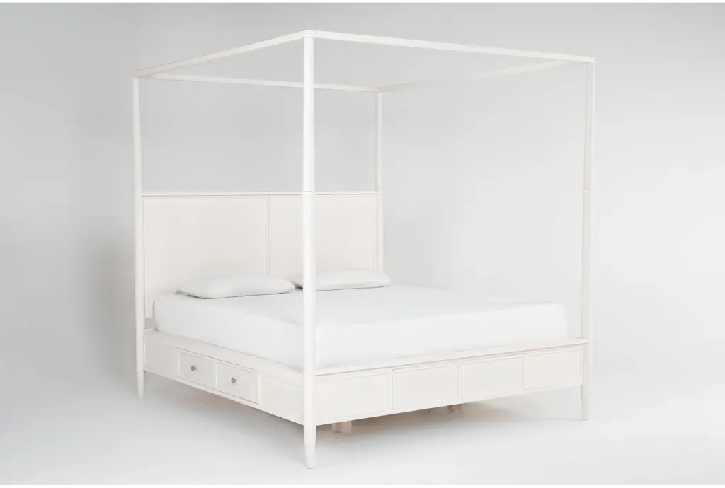 Austen White California King Wood Platform Canopy Bed With Side Storage