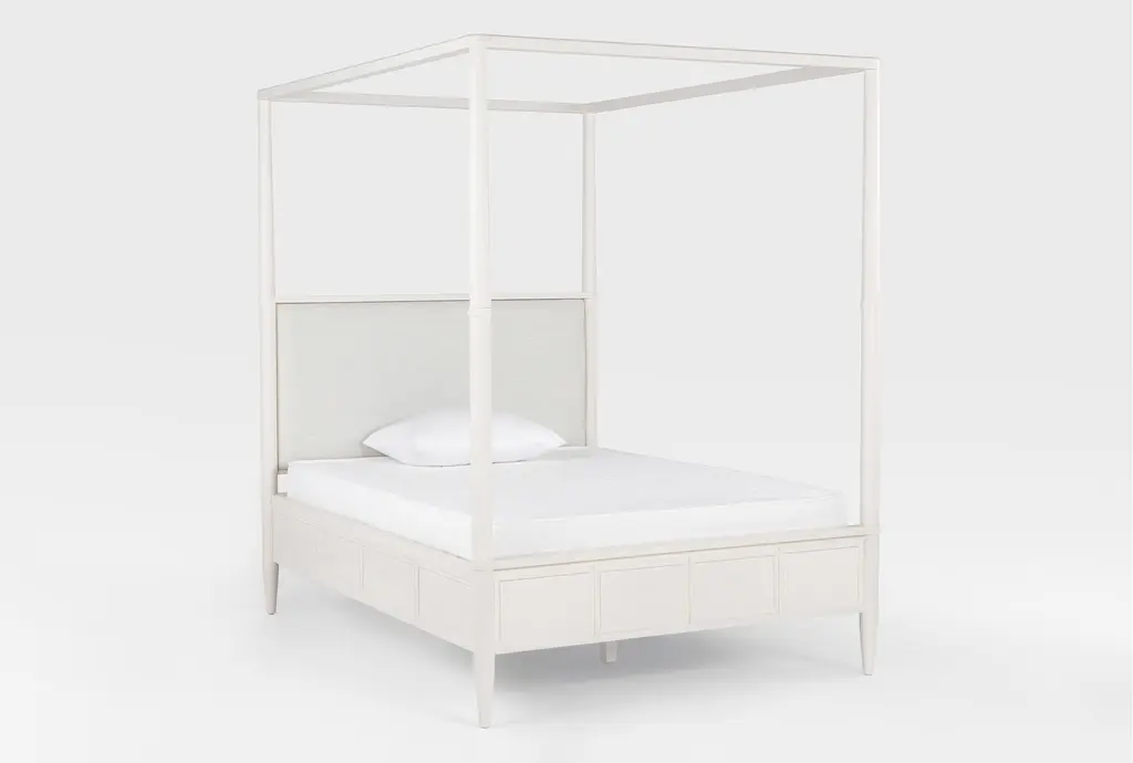 Transform your child's bedroom with the Austen White Full Wood & Upholstered Canopy Bed. This traditional-style bed combines the classic appeal of white wood with the comfort of upholstered fabric. The sturdy rubberwood frame ensures durability, making it a lasting addition to any kid's room.