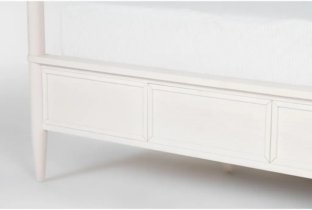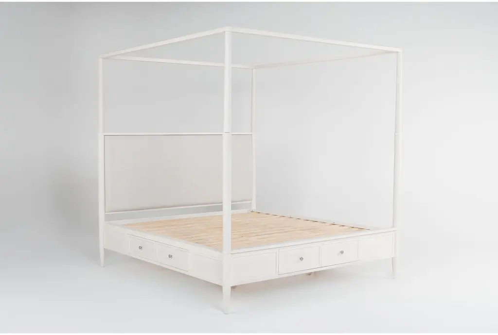 Austen White King Wood & Upholstered Platform Canopy Bed With Side & Footboard Storage | Poster | Drawers