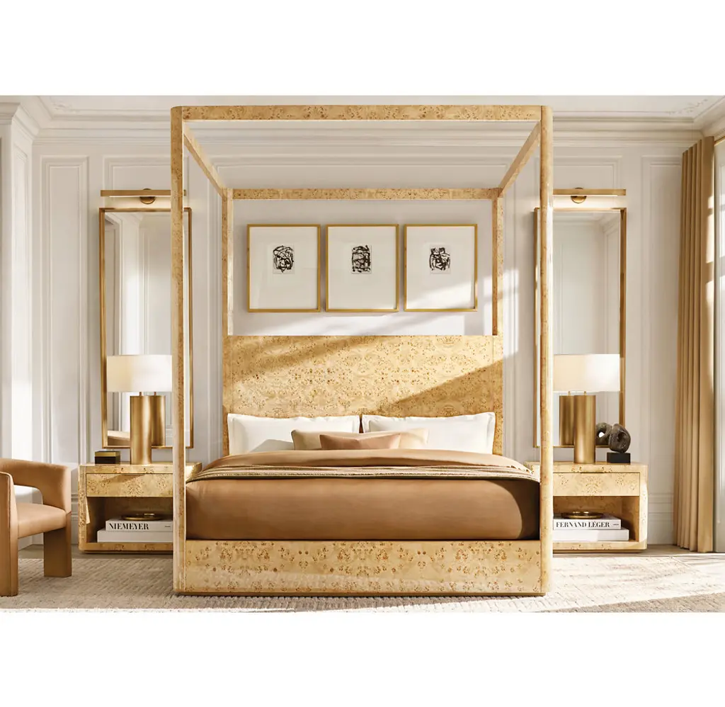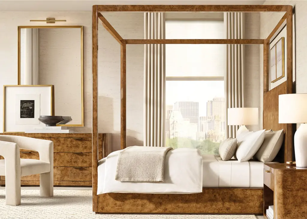 Understated and tailored in its restraint, our collection honors the minimalist geometric forms of 1970s postmodernism and the era's embrace of exotic materials. The clean, gently curved silhouettes are wrapped in burl wood veneers, which highlight the intricate, swirling grain patterns and mottled shading. Expertly cut and pieced by hand, the burl is sanded and buffed to an elegant sheen. SHOP THE ENTIRE COLLECTION SHOP THE FRESHBED™ SLEEP SYSTEM SHOP AIRELOOM® MATTRESSES