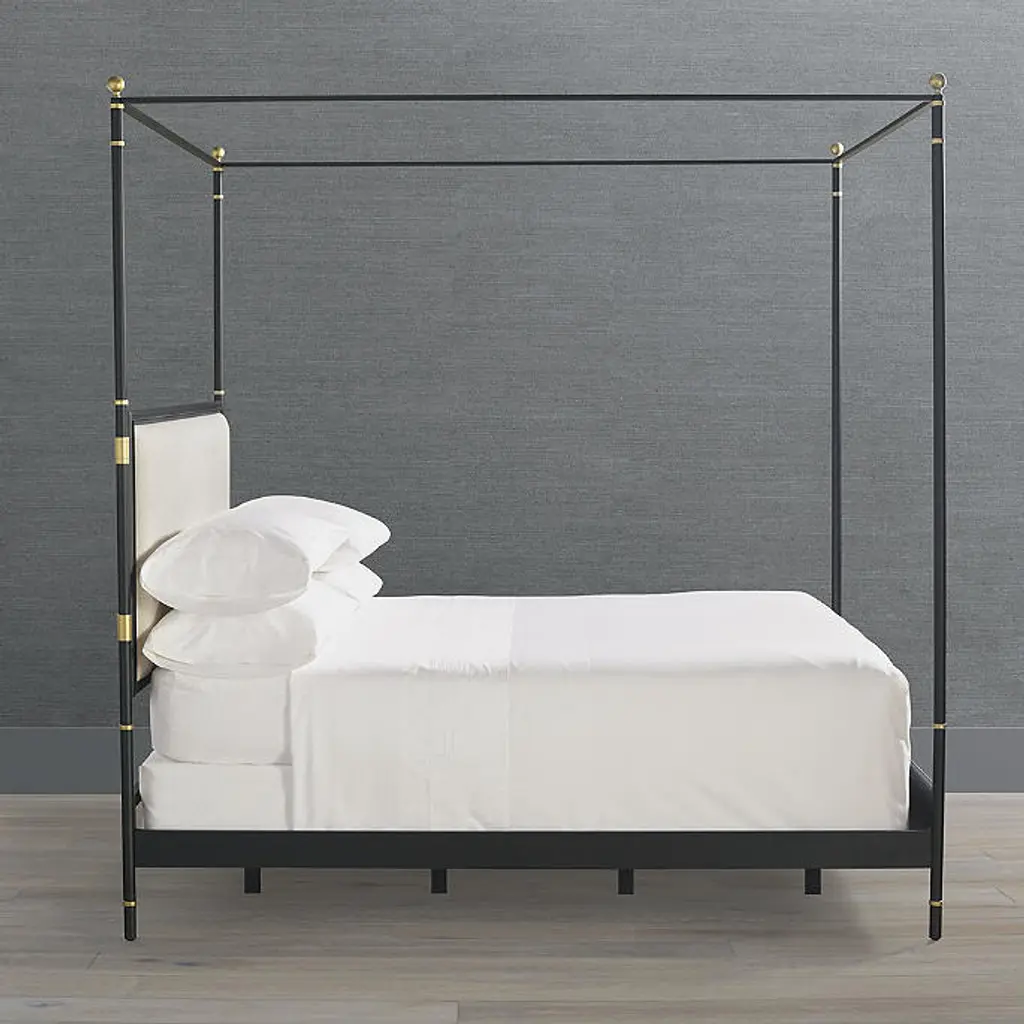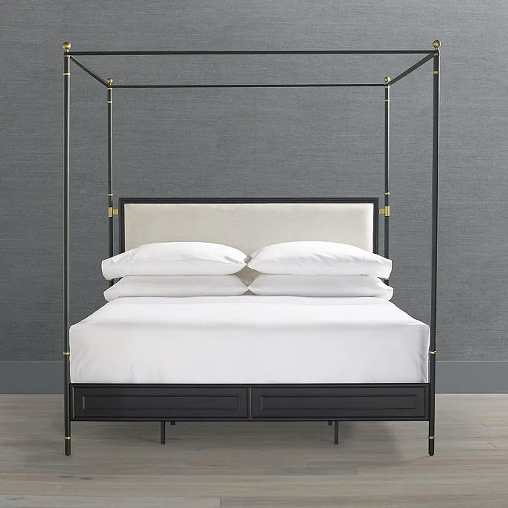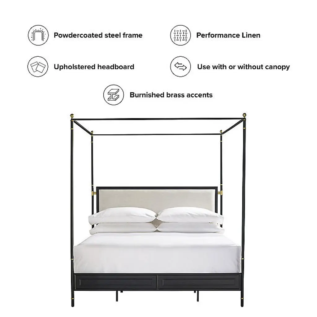 Accented with expertly crafted architectural details, our sophisticated Bastille Canopy Bed is crafted with a powdercoated steel frame and finished with a Performance Linen upholstered headboard. The frame is finished in blackened pewter with burnished brass accents.Powdercoated steel frame with a blackened pewter finishHeadboard upholstered in Performance Linen fabricCan be used with or without canopy Designed to be used with a mattress and box spring To prevent injuries or damage to item, recommended team lift (two or more people) for furniture placementAssembly requiredImportedA Frontgate exclusive.At Frontgate, our primary focus is quality. We guarantee that every product we sell will stand up to the supreme test – our customers' satisfaction. To learn more about our policies, visit our Shipping & Processing, Returns & Exchanges and Warranty & Price Guarantee pages.