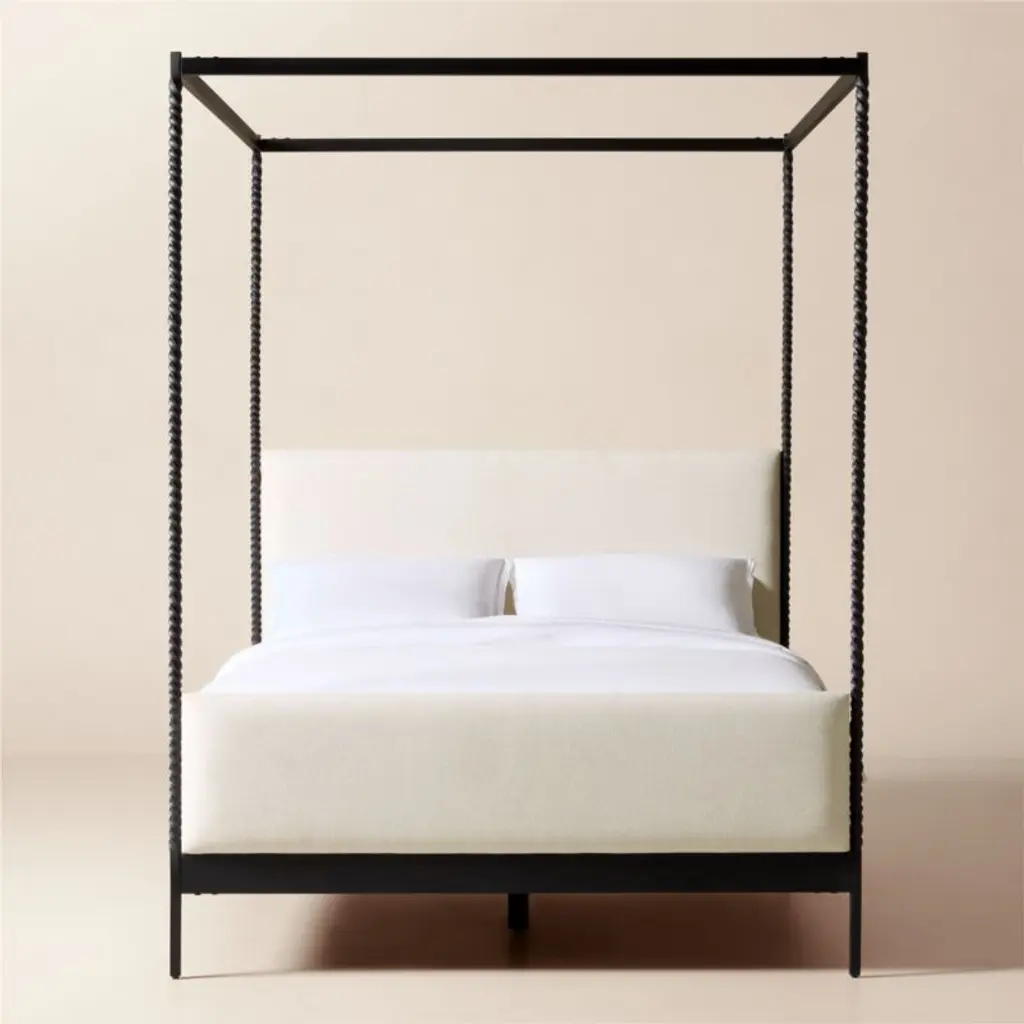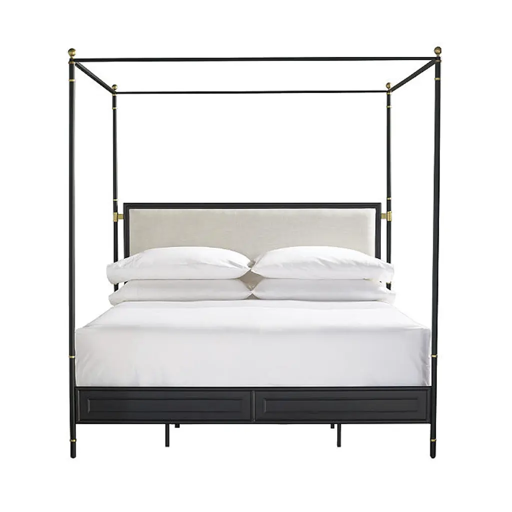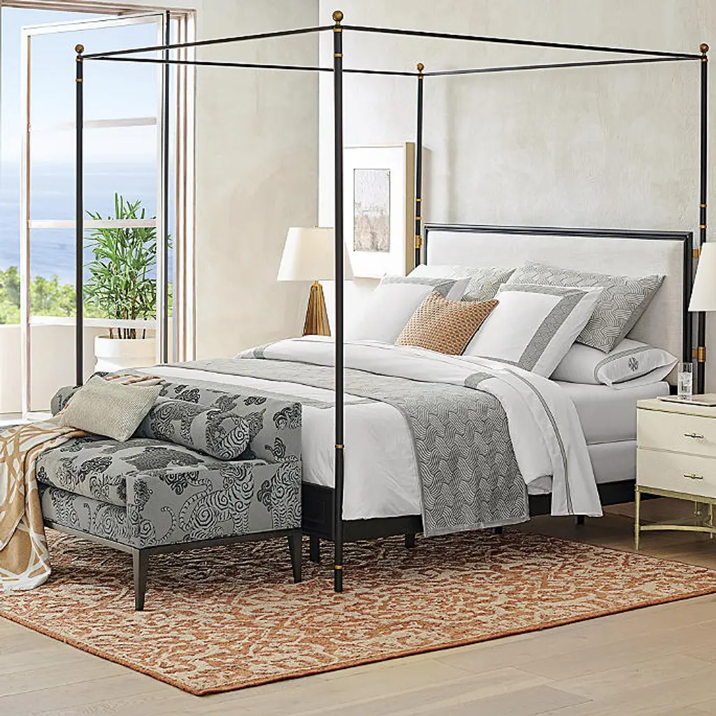 Accented with expertly crafted architectural details, our sophisticated Bastille Canopy Bed is crafted with a powdercoated steel frame and finished with a Performance Linen upholstered headboard. The frame is finished in blackened pewter with burnished brass accents.Powdercoated steel frame with a blackened pewter finishHeadboard upholstered in Performance Linen fabricCan be used with or without canopy Designed to be used with a mattress and box spring To prevent injuries or damage to item, recommended team lift (two or more people) for furniture placementAssembly requiredImportedA Frontgate exclusive.At Frontgate, our primary focus is quality. We guarantee that every product we sell will stand up to the supreme test – our customers' satisfaction. To learn more about our policies, visit our Shipping & Processing, Returns & Exchanges and Warranty & Price Guarantee pages.