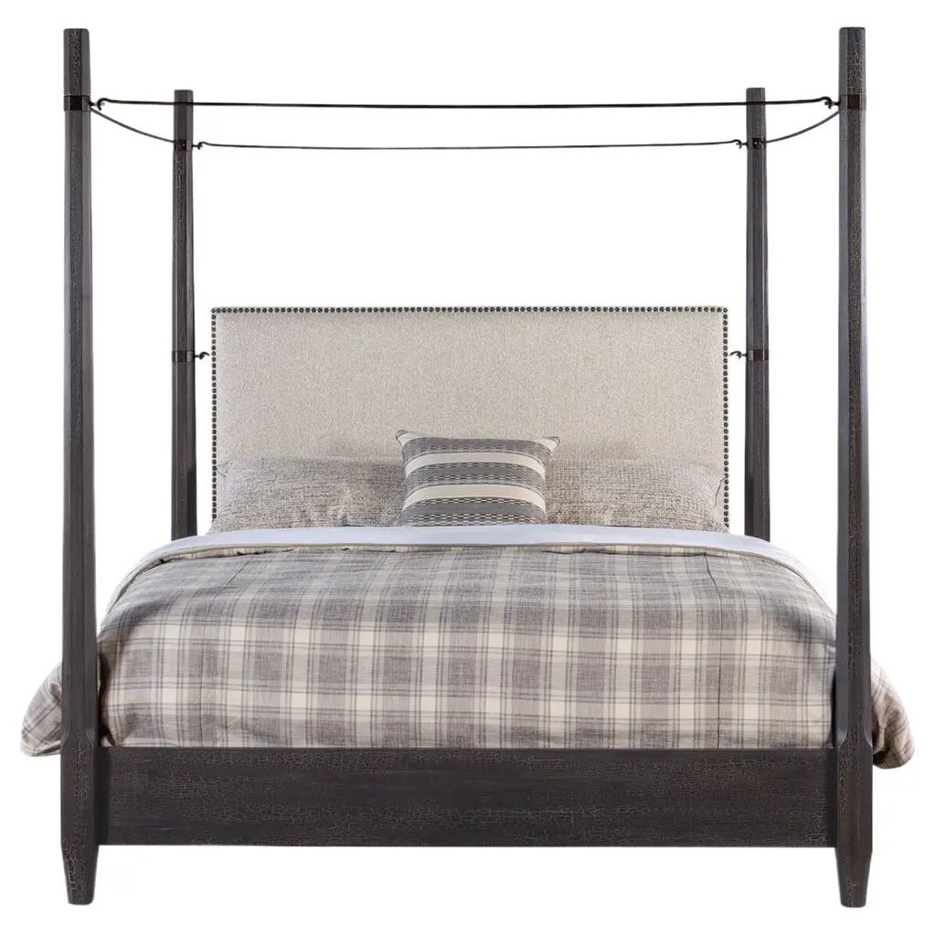 Big Sky Poster Upholstered Linen Canopy Bed, Charred Timber