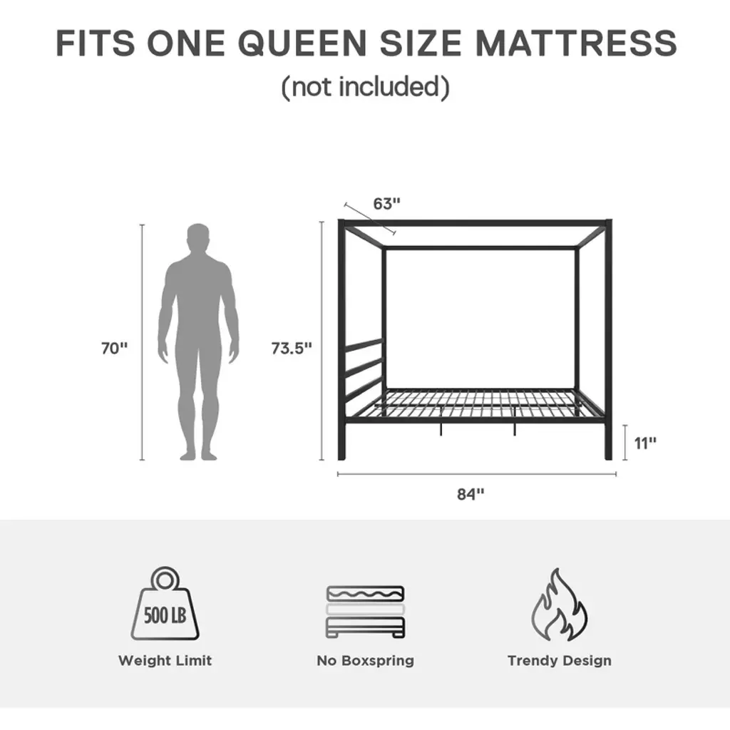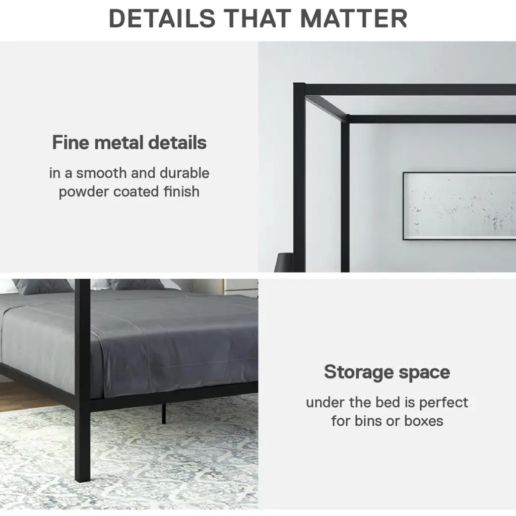 Dhp Modern Metal Canopy Bed, Queen, Black