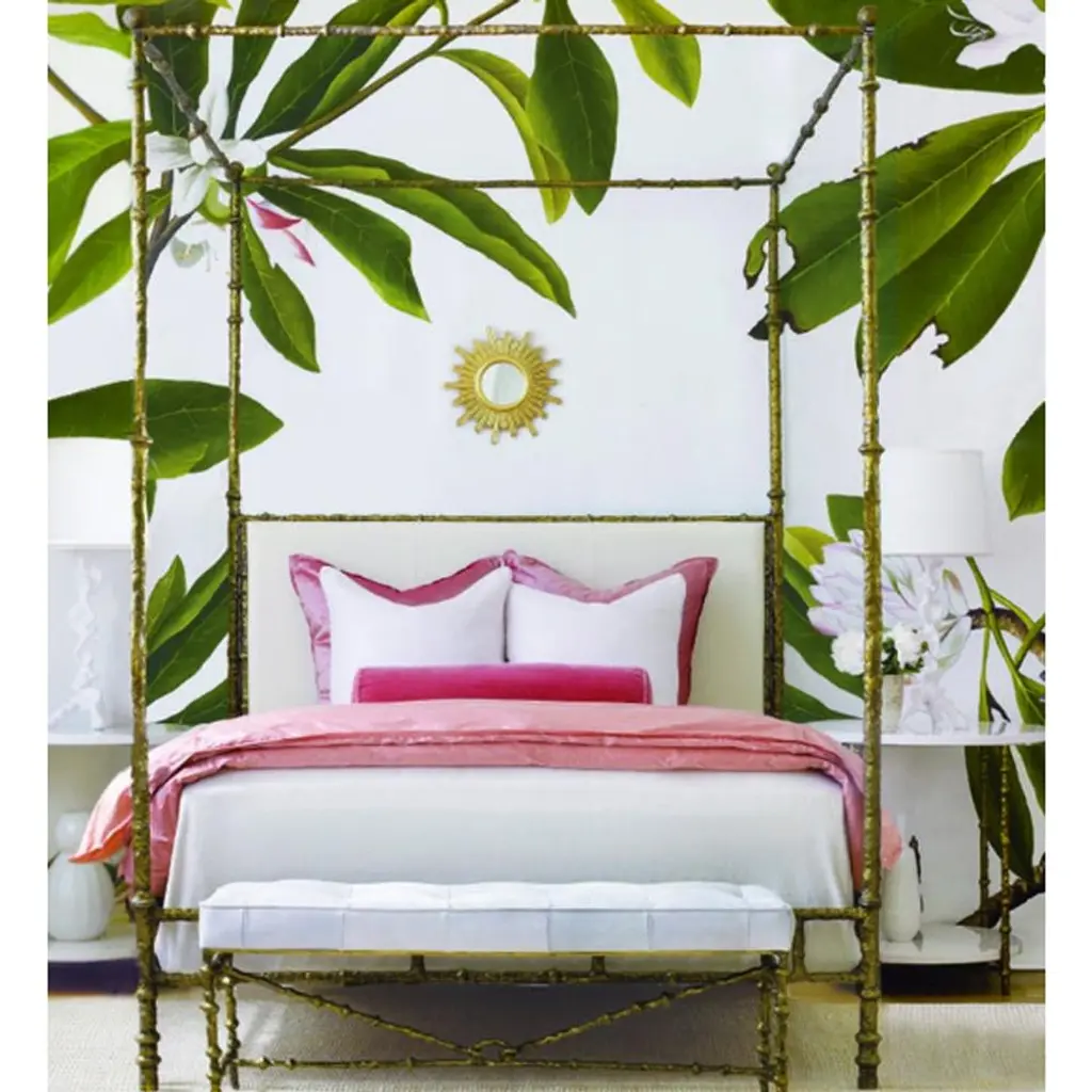 Diego Ivory Sculpted Gold Metal Canopy Bed - King
