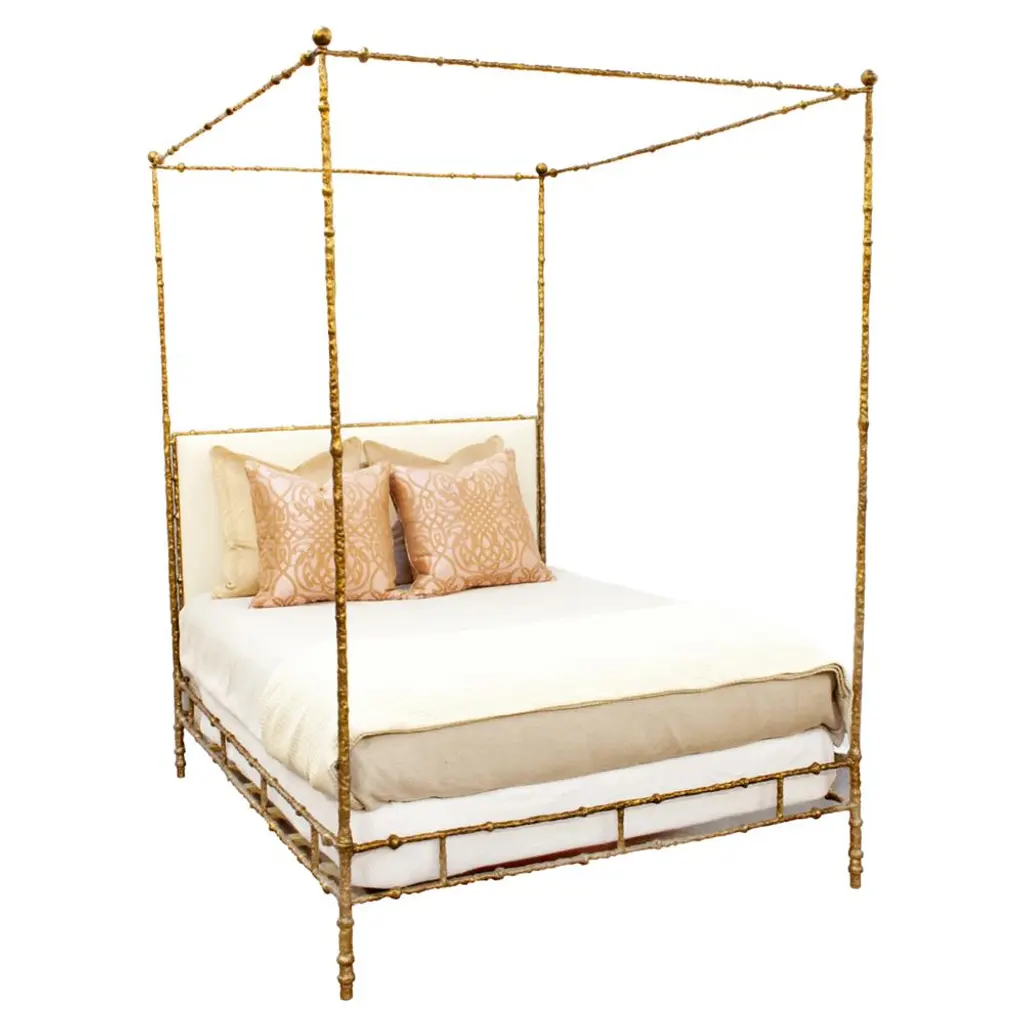 Diego Ivory Sculpted Gold Metal Canopy Bed - Queen