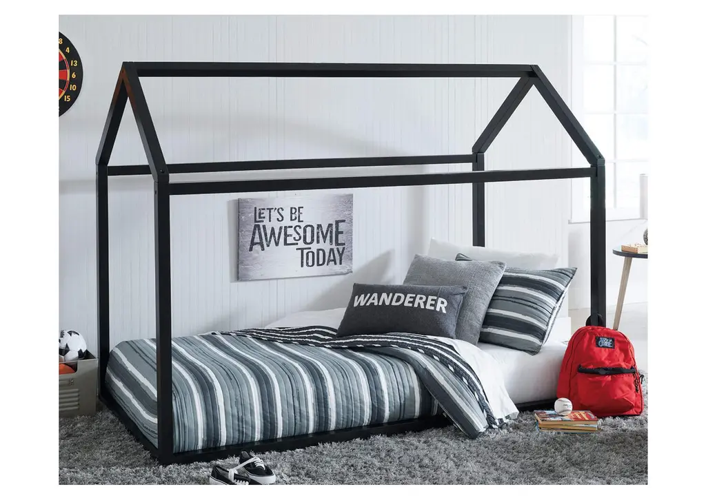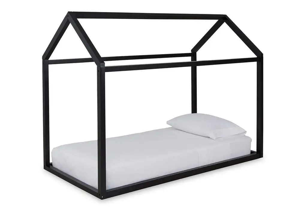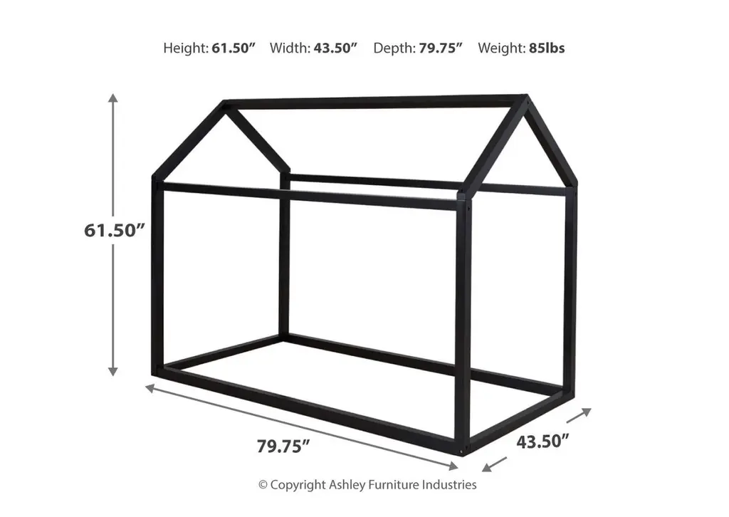 Give them a home of their own and plenty of room to grow with the Flannibrook twin bed “house.” Its delightful architectural styling creates a room within a room where they can work, rest or play. Whether arranged as a bed or left as an open space, the simple A-frame design gives them plenty of options to choose from. Weight 85.000 lbs. (38.25kgs.)