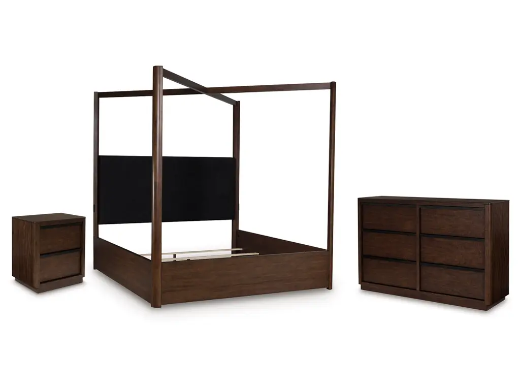 Casual contemporary styling with a decidedly modern vibe. The Kendamor bedroom package's rich dark brown finish is warm and inviting, dressing your restful retreat with on-trend elegance. What a simply stunning way to achieve the bedroom of your dreams.