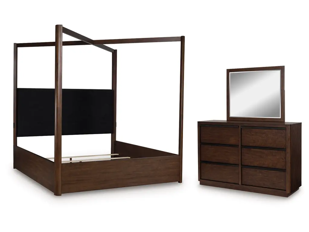 Kendamor California King Canopy Bed With Mirrored Dresser