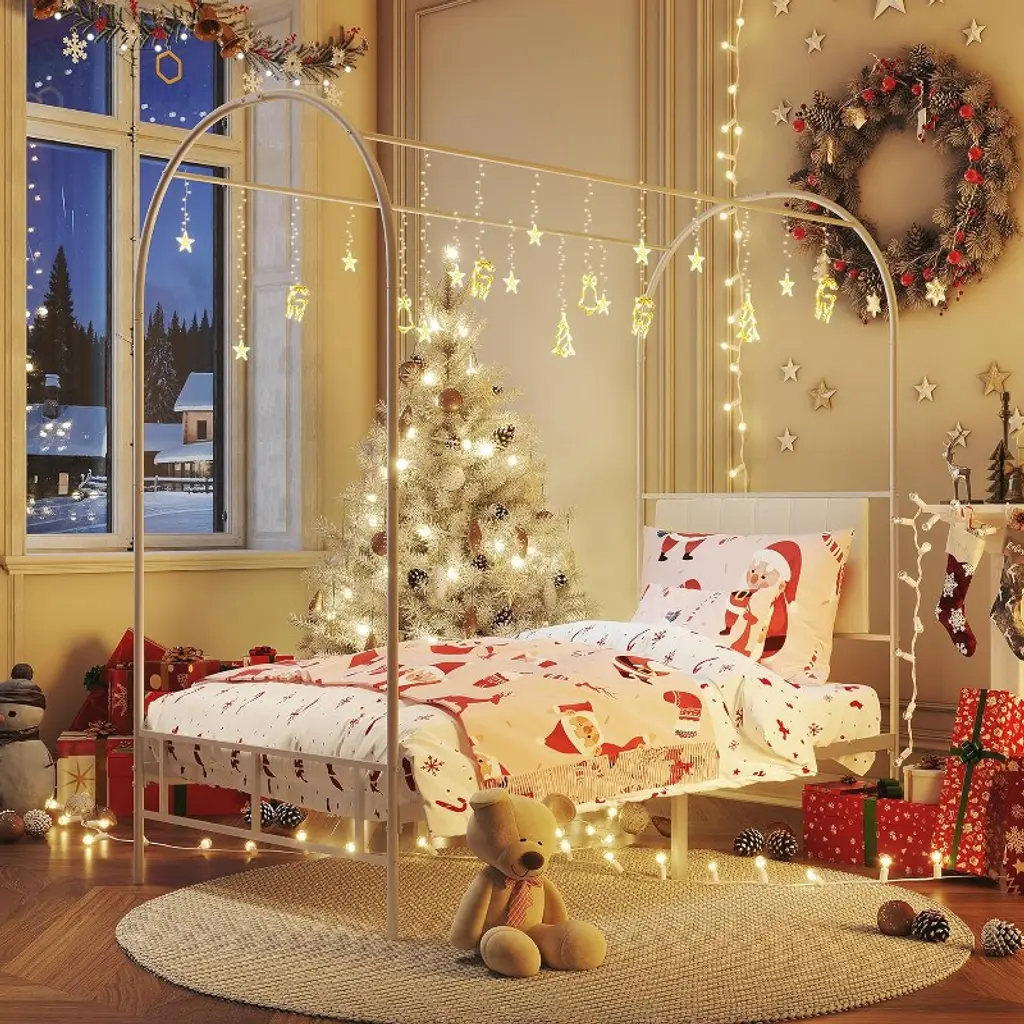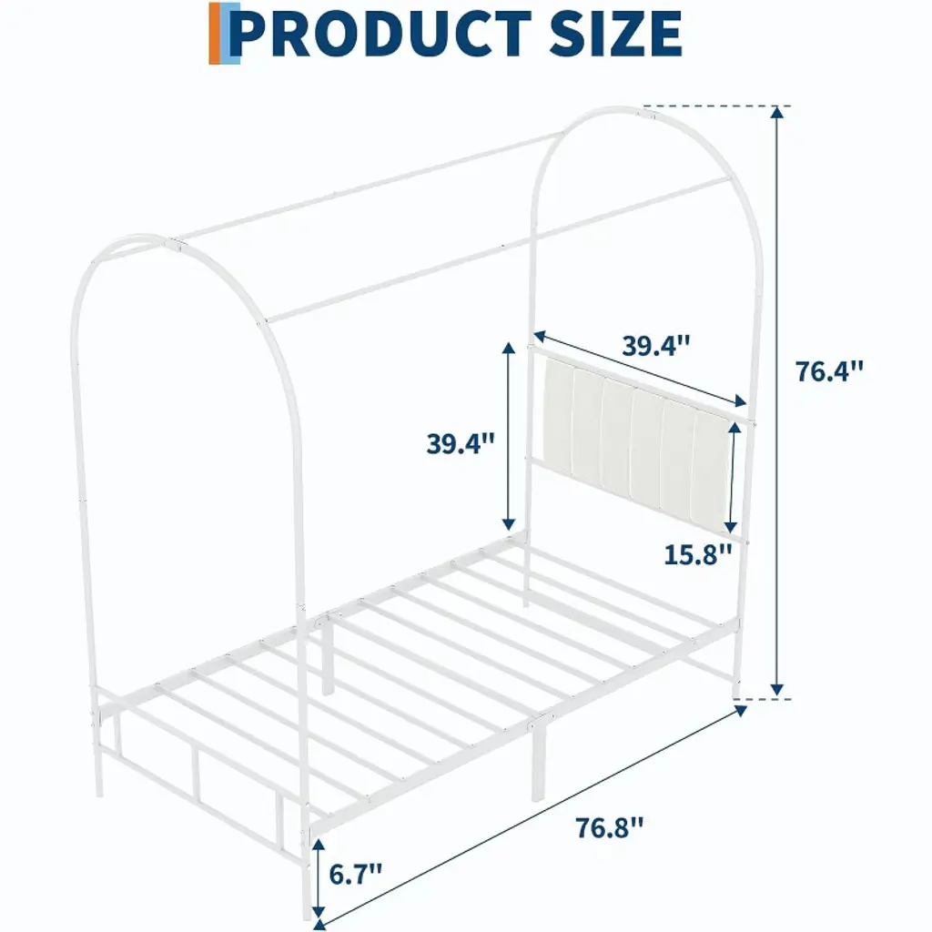 Kids Canopy Bed Frame With Headboard & Footboard,upholstered Twin Bed Frames With Arched Mosquito Net Poles,white