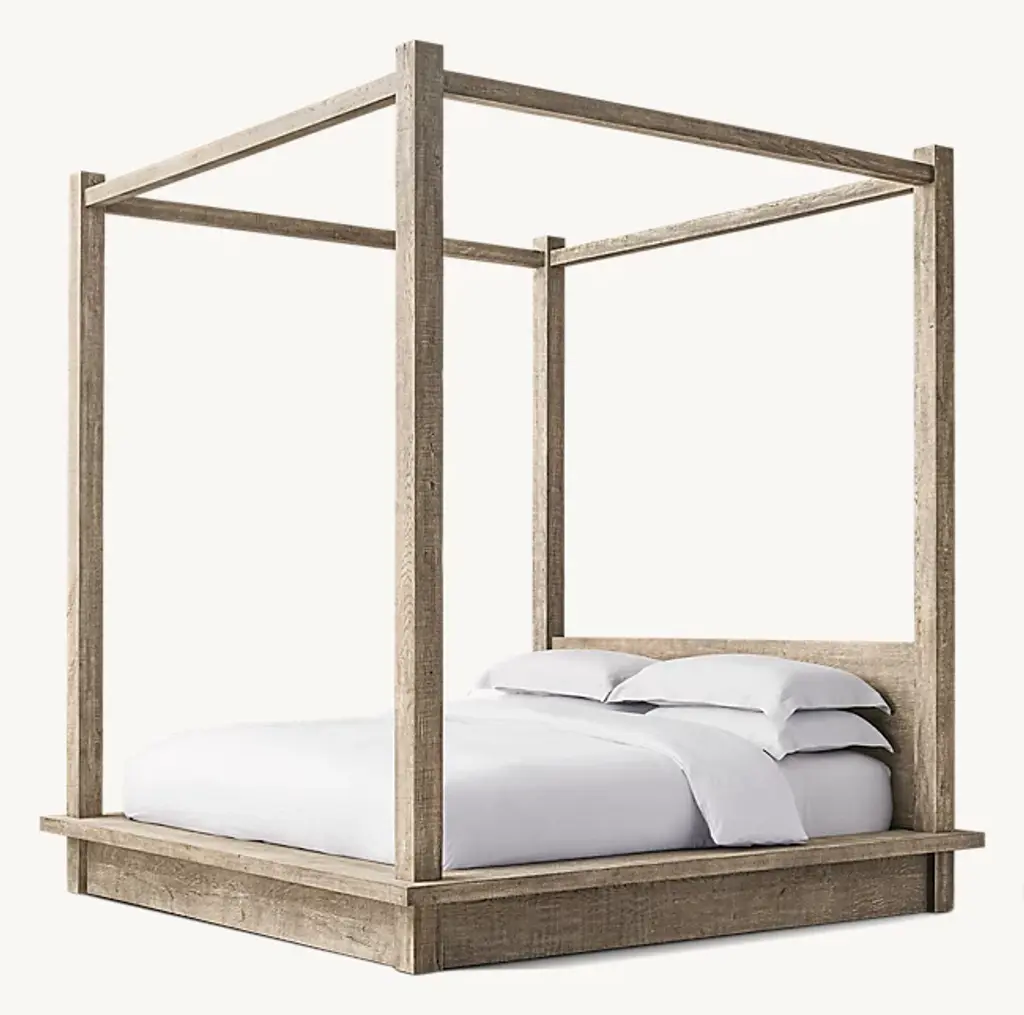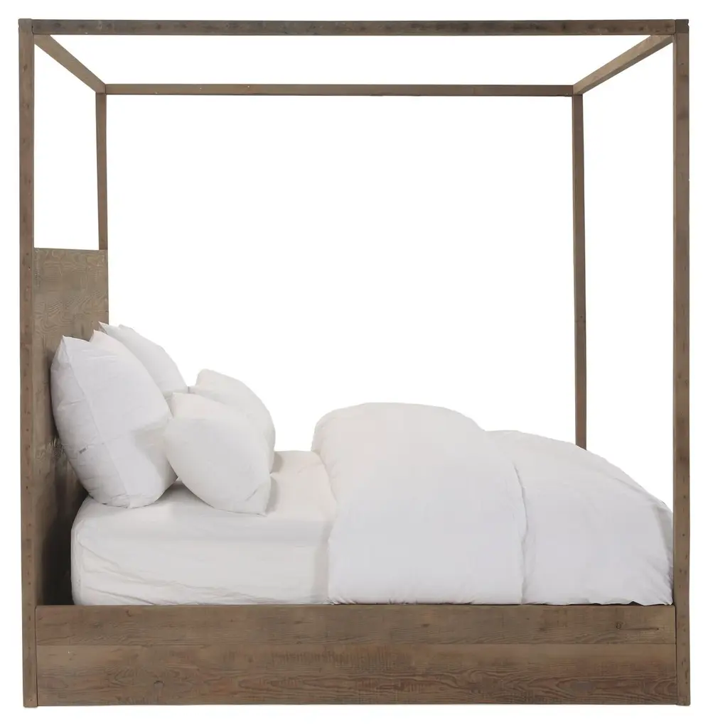 Sustainable and stylish in reclaimed alder, this beautifully grained bed features four towering posts joined by a canopy top. Mattress and box spring required. Because this item is made using natural or reclaimed materials, each piece is unique and may vary slightly from the image shown.
