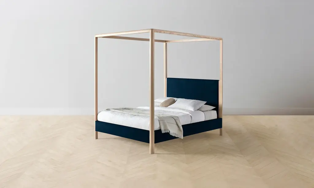 The Thompson Canopy Bed - Mohair Admiral - Queen / Whitewash Ash