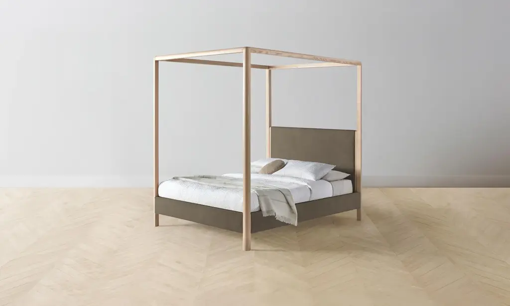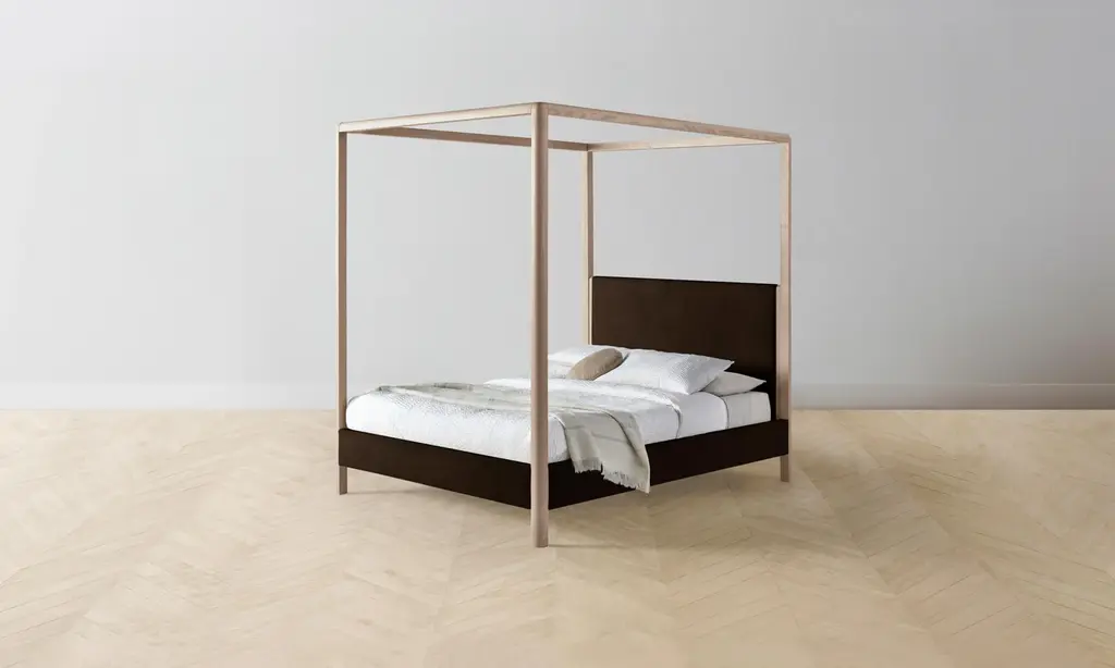 The Thompson Canopy Bed - Mohair Chocolate - Queen / Whitewash Ash