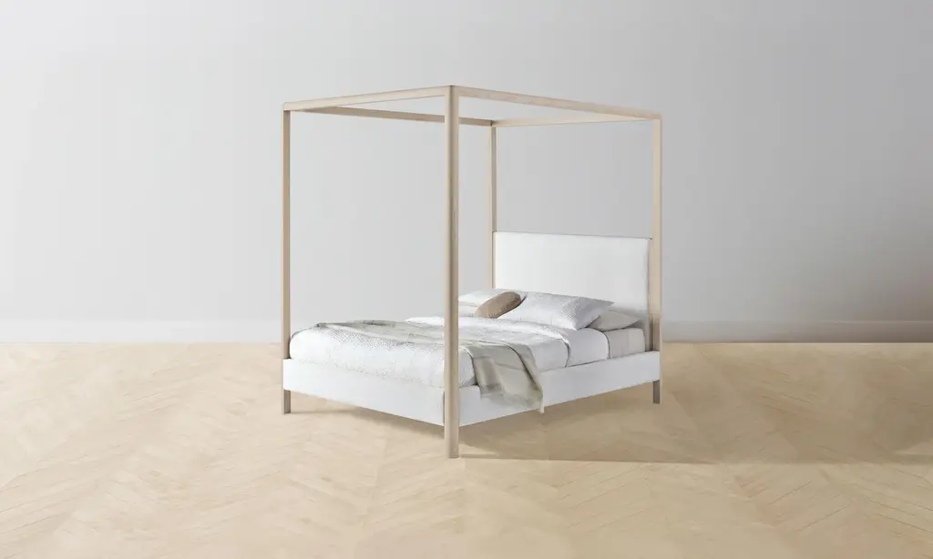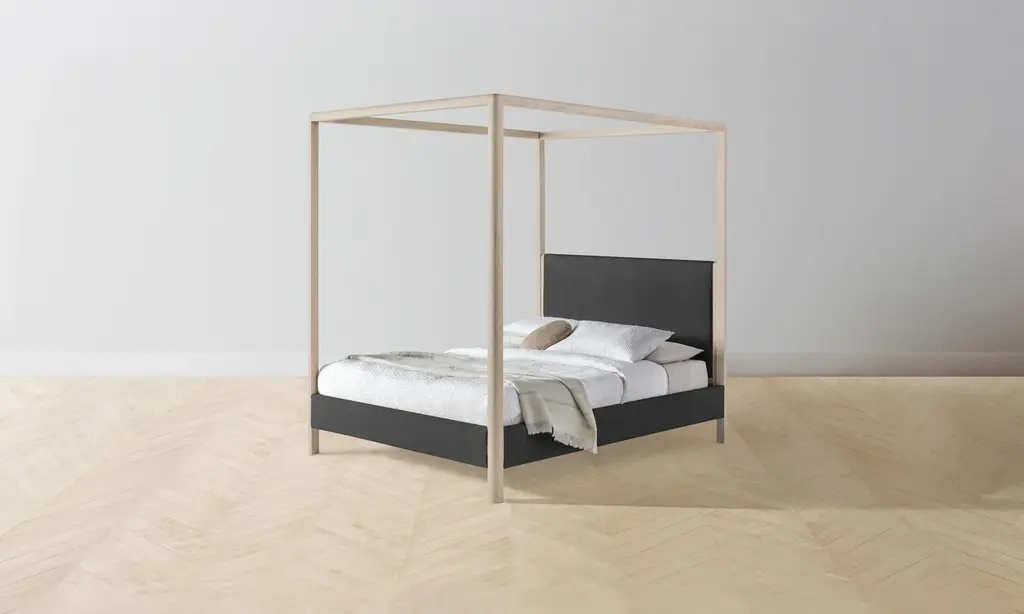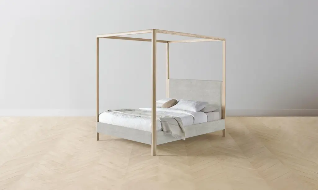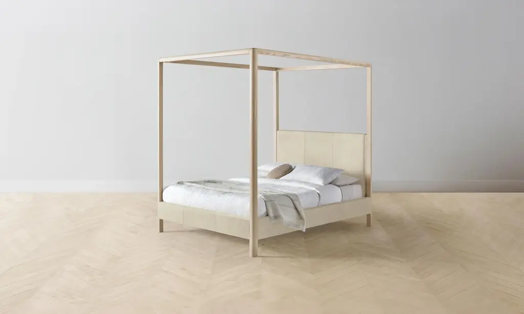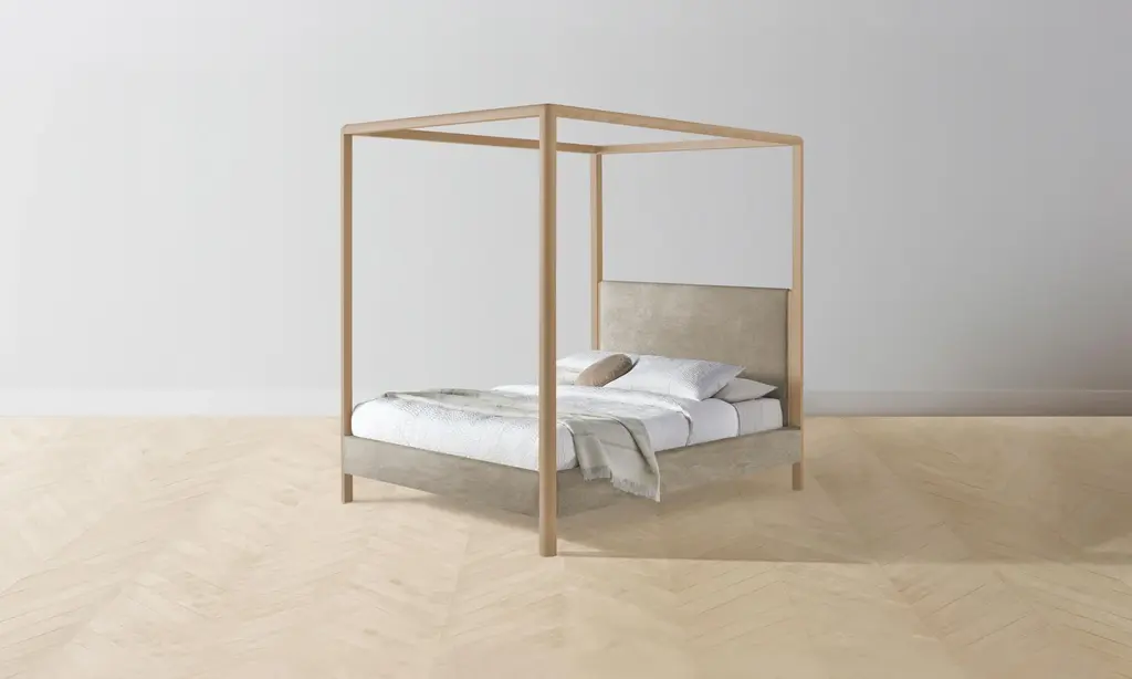 The Thompson Canopy Bed - Nubuck Leather Fawn - Queen / Driftwood Ash