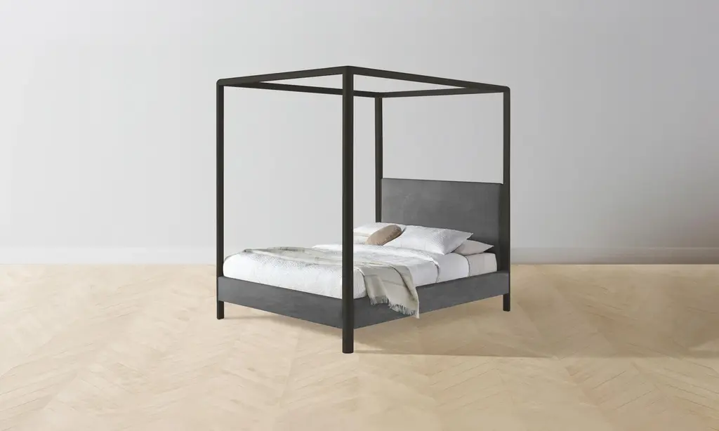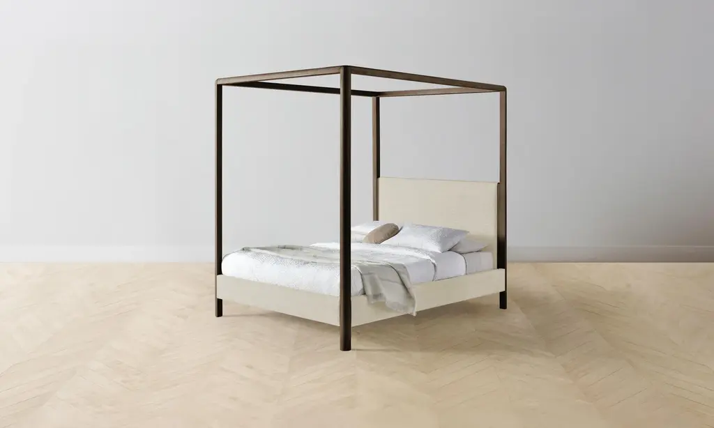 The Thompson Canopy Bed - Nubuck Leather Tide - Queen / Coffee Ash