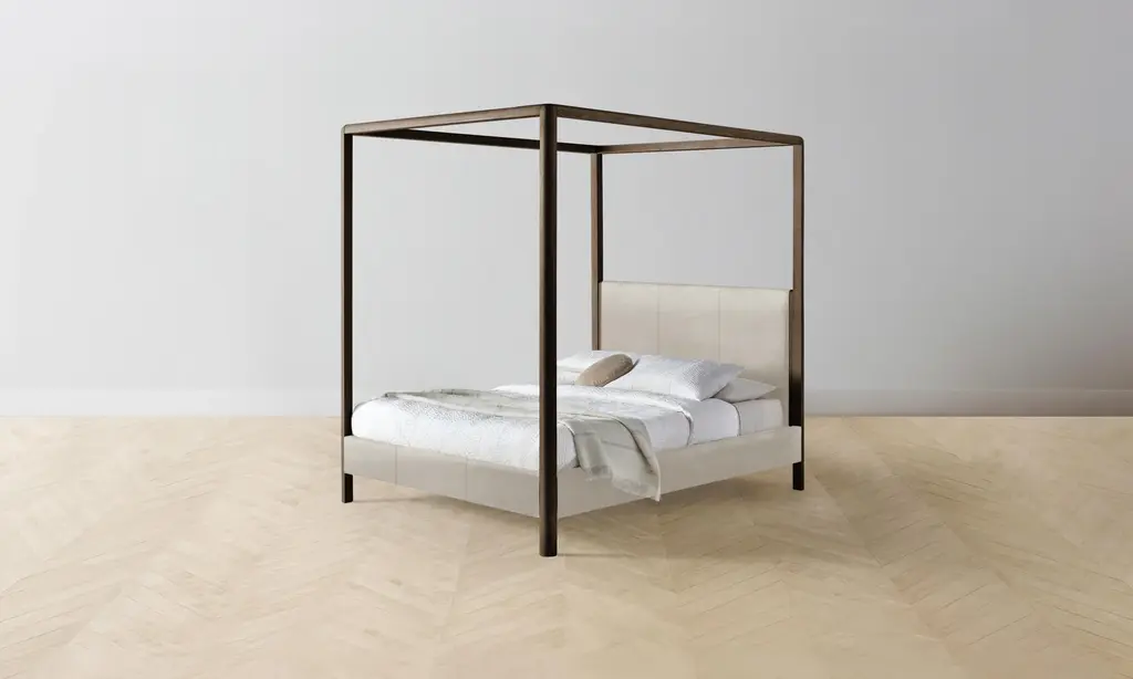 The Thompson Canopy Bed - Pebbled Leather Swan - Queen / Coffee Ash
