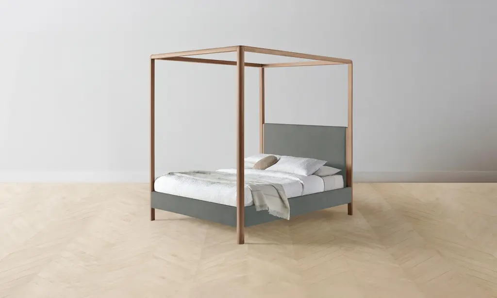 The Thompson Canopy Bed - Performance Linen Weave Bay - Queen / Driftwood Ash
