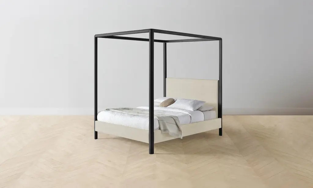 The Thompson Canopy Bed - Performance Woven Chenille Steel - Queen / Charcoal Ash