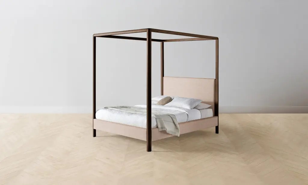The Thompson Canopy Bed - Tuscan Leather Bisque - Queen / Coffee Ash