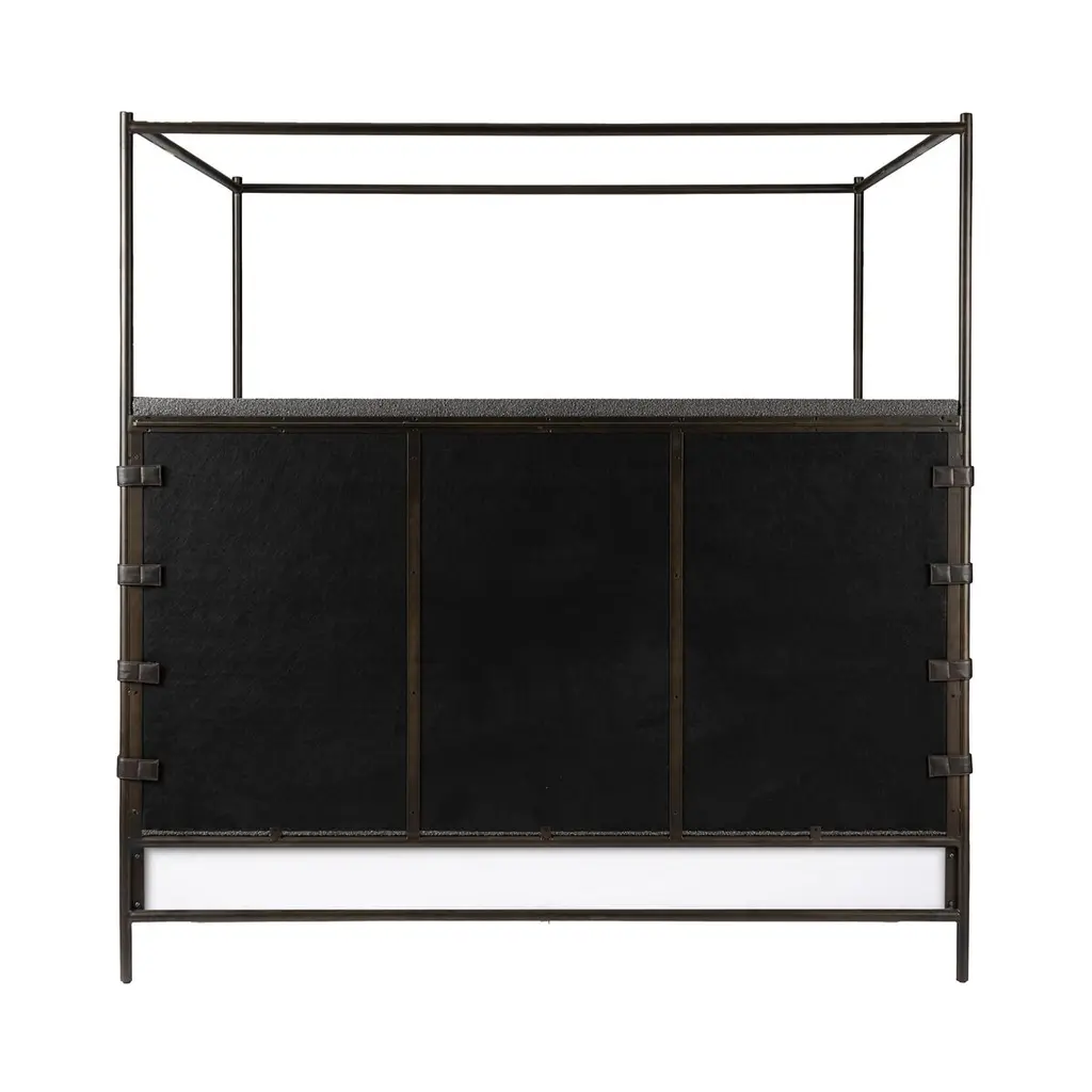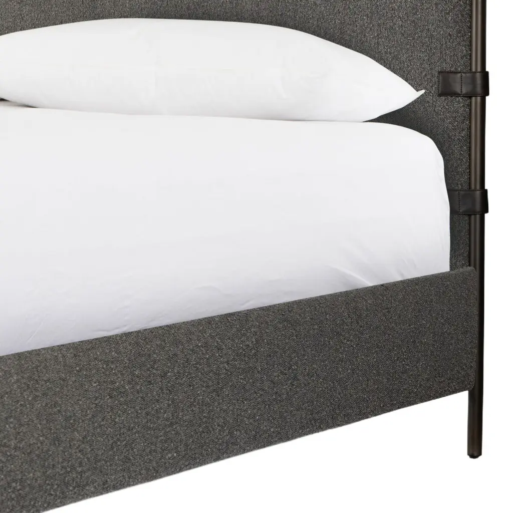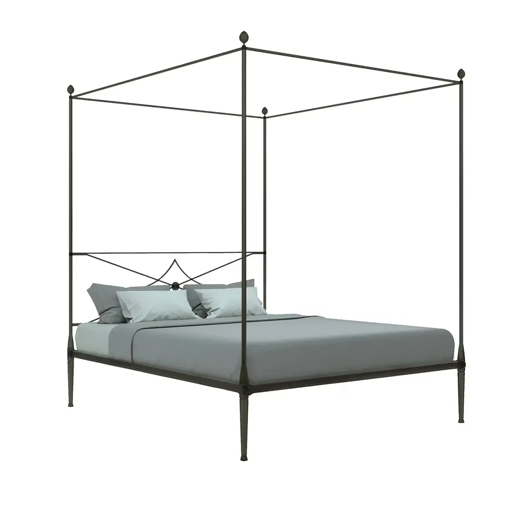 Bring texture into play with the Winslow Canopy Bed. This iron canopy bed features a headboard upholstered in a fabric that adds a touch of elegance and sophistication. Designed with a focus on material-driven contrast, it requires a standard box spring and is not compatible with an adjustable mattress. Elevate your bedroom with this beautifully crafted piece that seamlessly blends style and functionality.