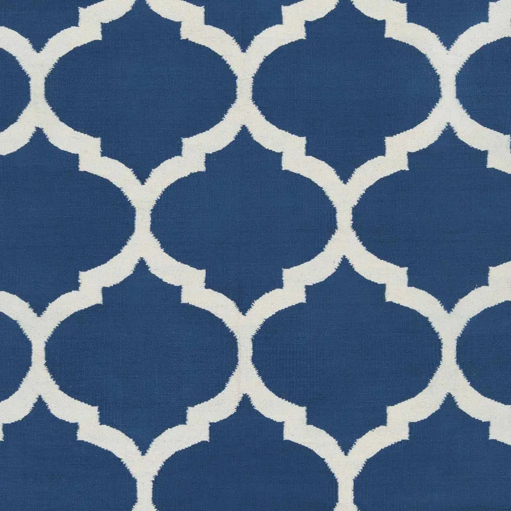 Collection: Alcalde Colors: Ivory, Navy Construction: Hand Woven Material: 100% Cotton Pile: Low Pile Pile Height: 0.2" Styles: Transitional Made In: India Price Range: $$$$$ (Most Affordable)