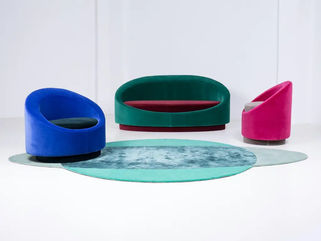 Materials: wool and bamboo silk.Colours: shades of green; also available in shades of pink or shades of blue.“After The Other Side, my first collection for Paradisoterrestre in 2017, I wanted to give continuity and shape to this poetic design concept in 2018 with All Around collection. This title suggests that we should look beyond an idea or a creation instead of being focused on the topic and on the result, maybe some interesting things could happen in between. It means that after having looked below, we have to look around.” – Pierre Gonalons.