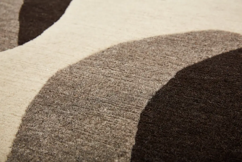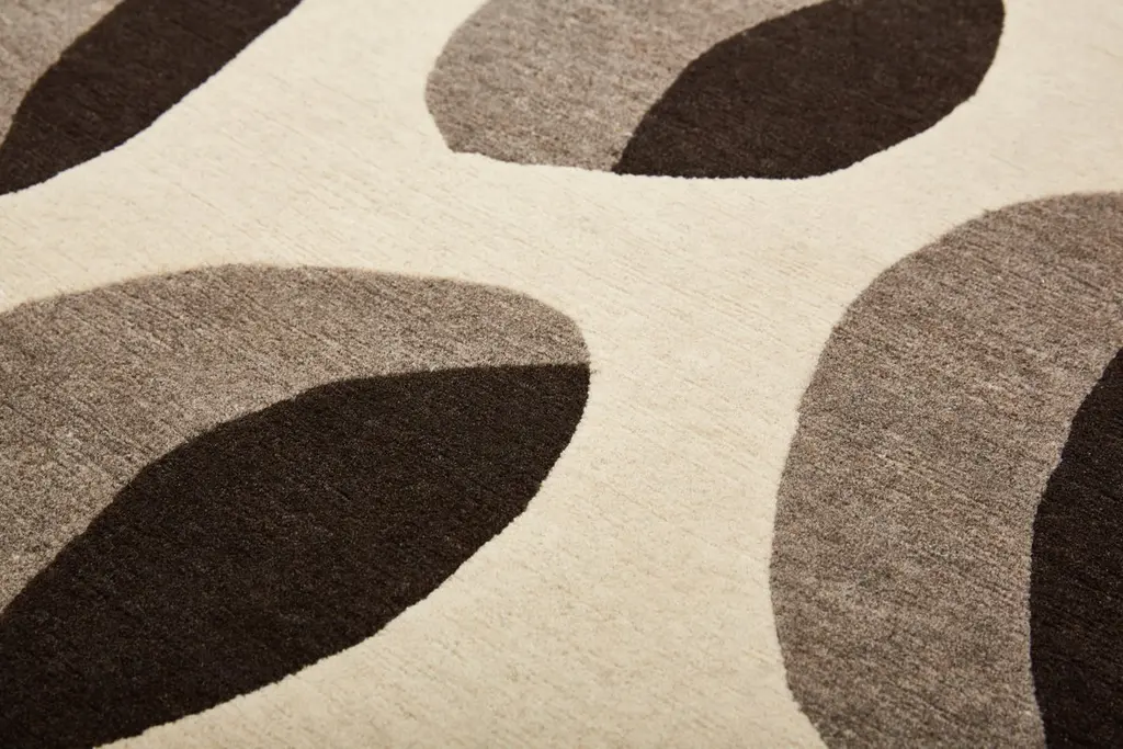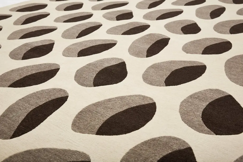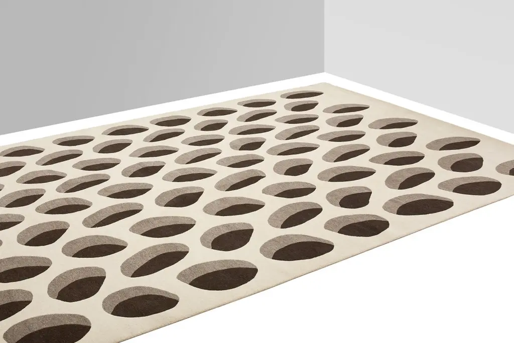 “Made of Tibetan wool, this ‘kinetic’ carpet taps into many references: The trompe l’oeil cube patterns of Renaissance flooring, the markings of the leopard, but also my ‘Continents’ console. Measures: 250 x 50 cm.Designed and moulded in a cartoon-artist style, the sequence of different-shaped motifs draws the eye into an exhilarating medley of ever-changing perspectives.The exuberant energy of the pattern invites us into another world, where the imagination can break free.” Xavier Lust.