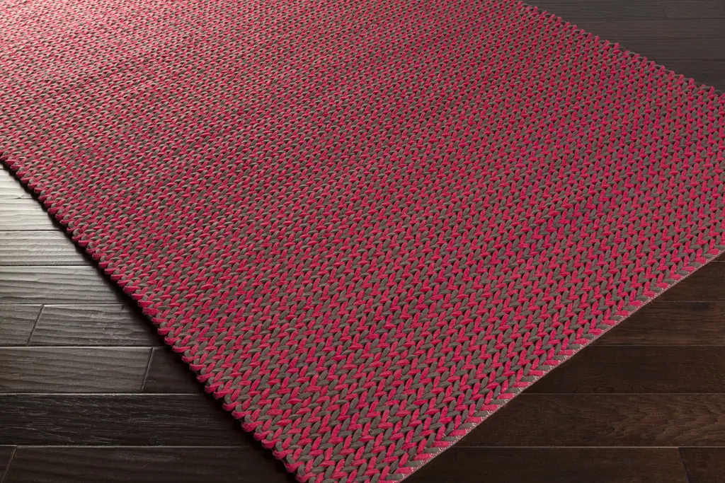 Collection: Axis Colors: Dark Pink, Dark Red Construction: Hand Woven Material: 100% Wool Pile: High Pile Pile Height: 0.71" Styles: Solid & Striped Made In: India Thickness: 0.71" Price Range: $$$$$ (Affordable)