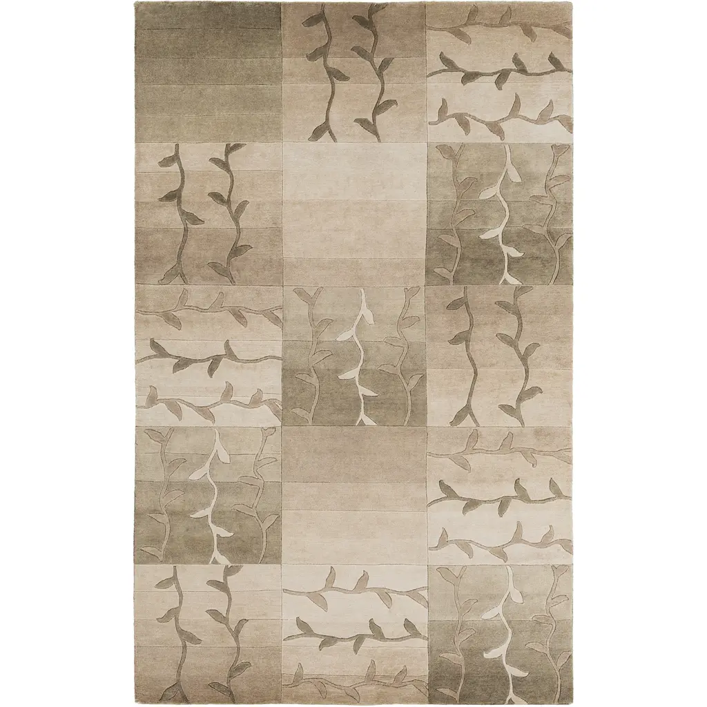 Collection: Bissell Colors: Light Brown, Dark Brown, Off White, Medium Gray Construction: Hand Knotted Material: 100% NZ Wool Pile: Medium Pile Pile Height: 0.31" Styles: Animal Made In: India Thickness: 0.39" Price Range: $$$$$ (Affordable)