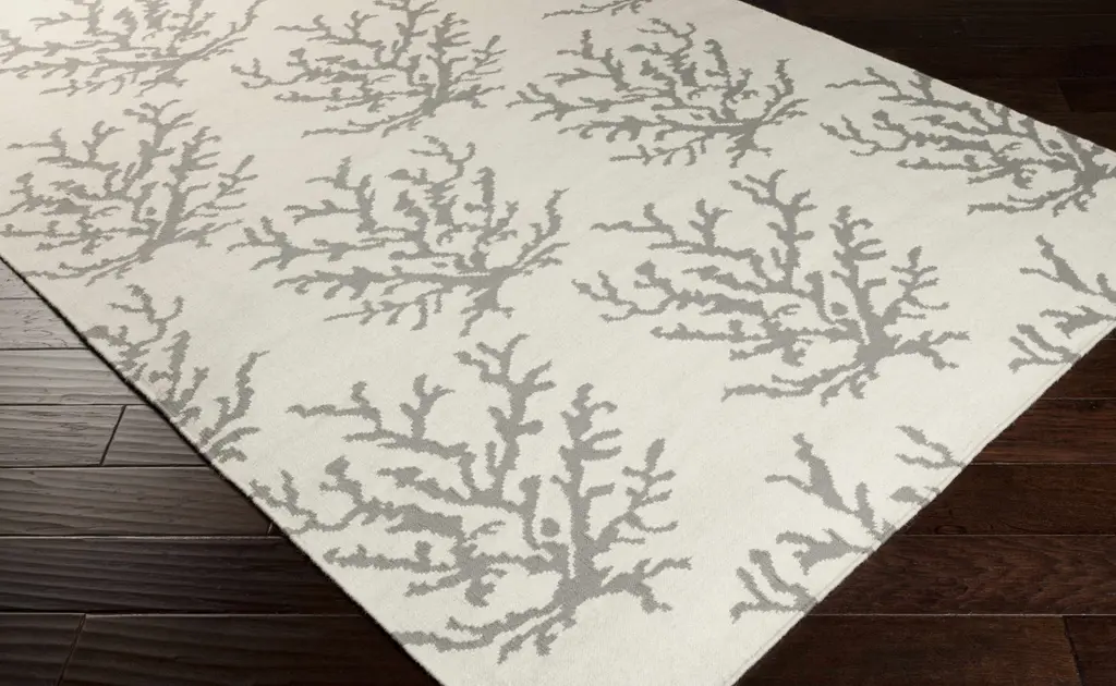 Collection: Braidwood Colors: Ivory, Light Slate Construction: Hand Woven Material: 100% Wool Pile: No Pile Styles: Coastal Made In: India Thickness: 0.15" Price Range: $$$$$ (Affordable)