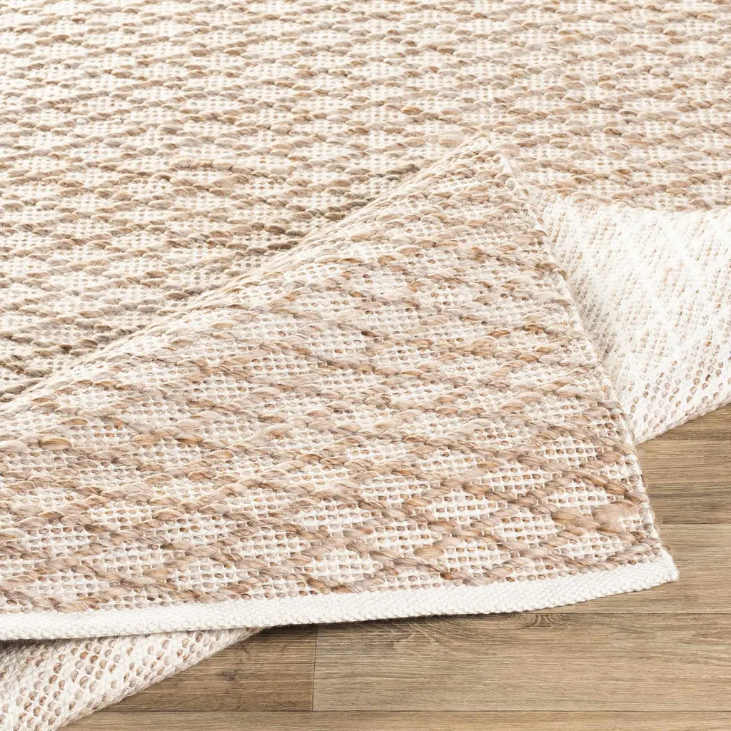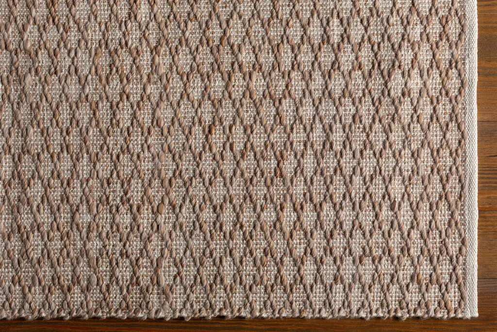 Collection: Brillion Colors: White, Tan, Dark Red Construction: Hand Woven Material: 100% Polyester Pile: No Pile Styles: Contemporary Made In: India Thickness: 0.2" Price Range: $$$$$ (Most Affordable)