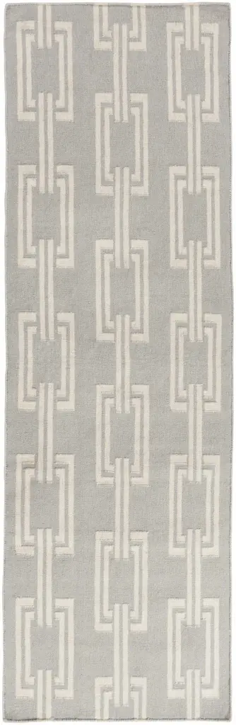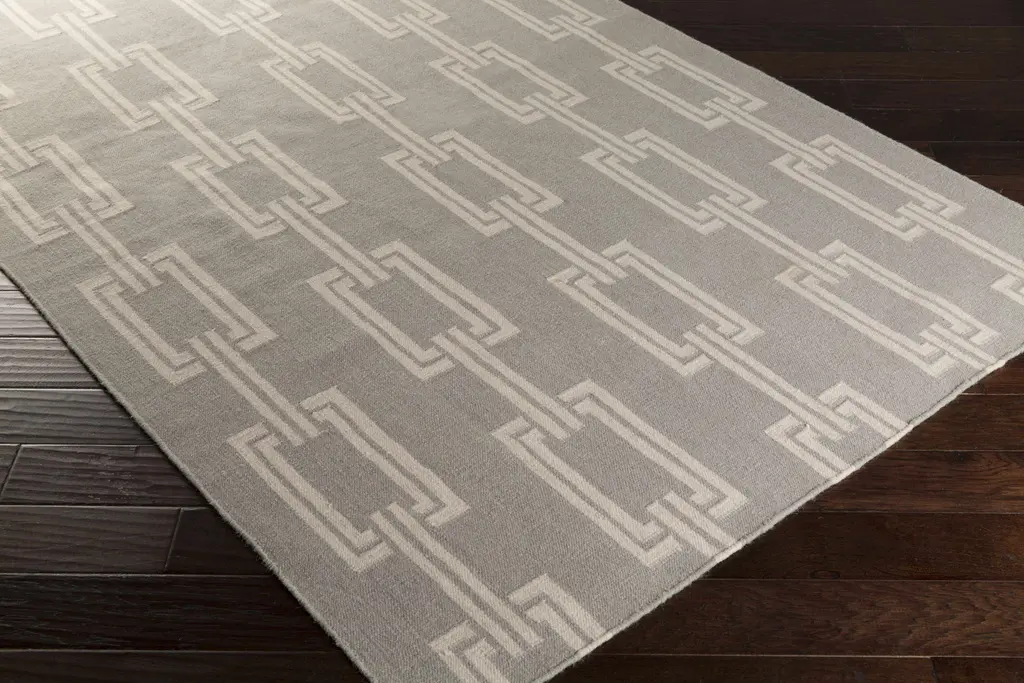 Collection: Brundidge Colors: Ivory, Gray Construction: Hand Woven Material: 100% Wool Pile: Low Pile Pile Height: 0.16" Styles: Coastal Made In: India Thickness: 0.15" Price Range: $$$$$ (Affordable)