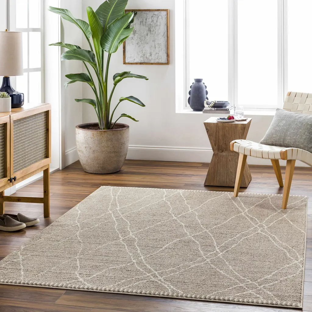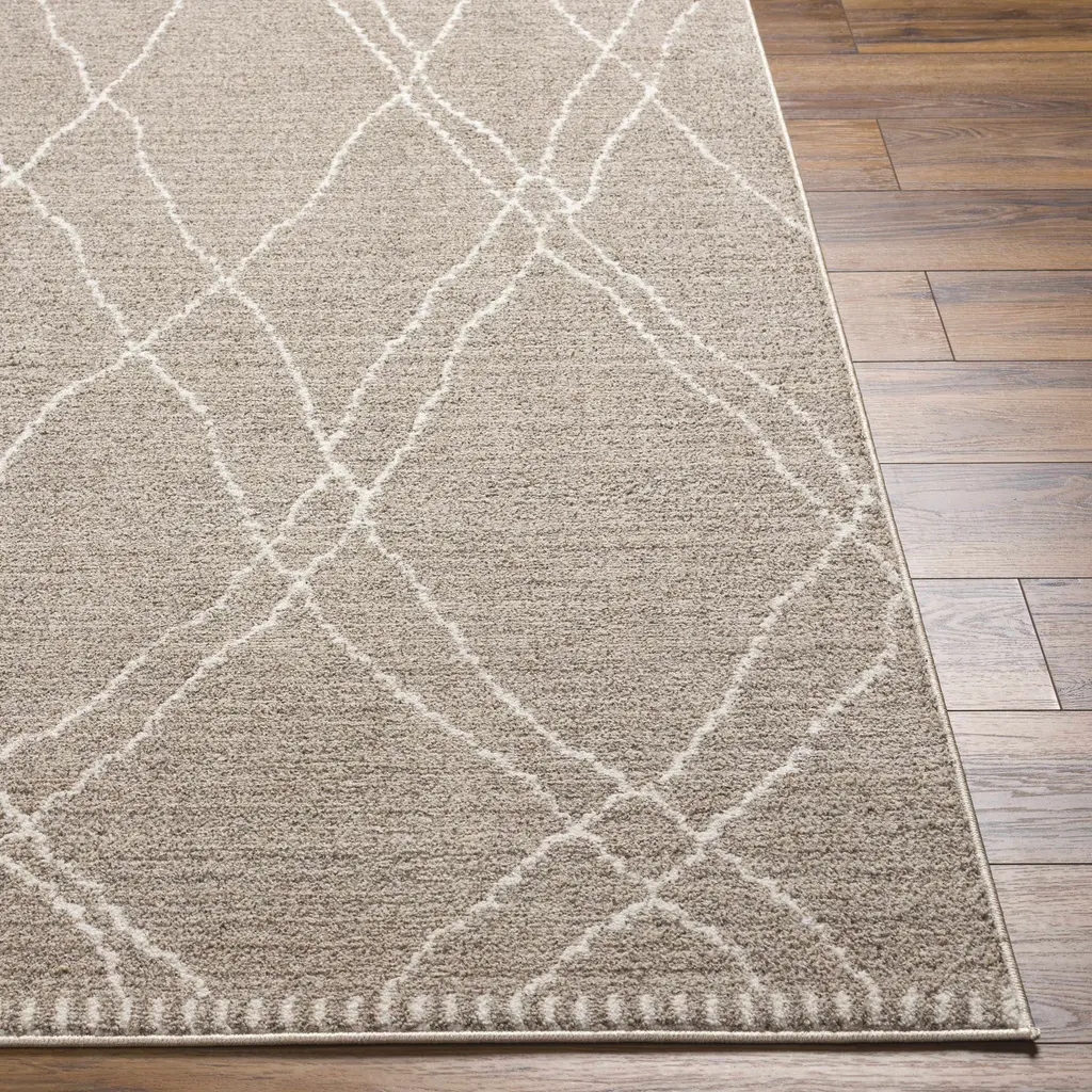 Collection: Burhaniye Colors: Light Brown, Cream, Beige Construction: Machine Woven Material: 100% Polyester Pile: Medium Pile Pile Height: 0.39" Styles: Transitional,Bohemian Made In: Turkey Thickness: 0.47" Price Range: $$$$$ (Most Affordable)