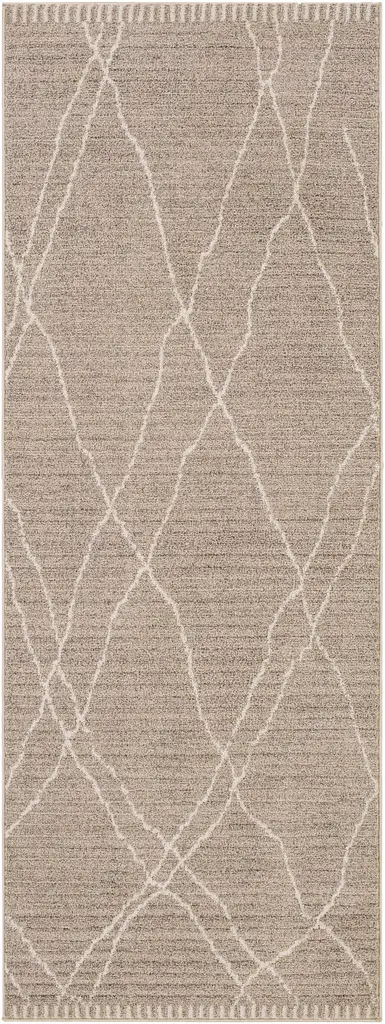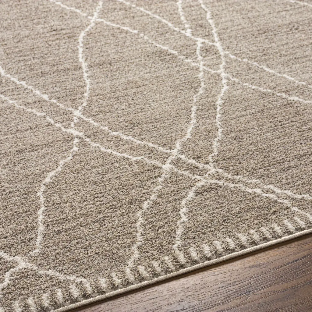 Collection: Burhaniye Colors: Light Brown, Cream, Beige Construction: Machine Woven Material: 100% Polyester Pile: Medium Pile Pile Height: 0.39" Styles: Transitional,Bohemian Made In: Turkey Thickness: 0.47" Price Range: $$$$$ (Most Affordable)