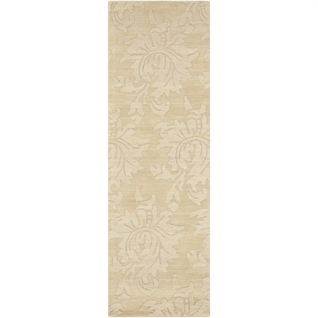 Collection: Cabool Colors: Peach Construction: Hand Loomed Material: 100% Wool Pile: High Pile Pile Height: 0.63" Styles: Solid & Striped Backing: Canvas Made In: India Thickness: 0.86" Price Range: $$$$$ (Most Affordable)