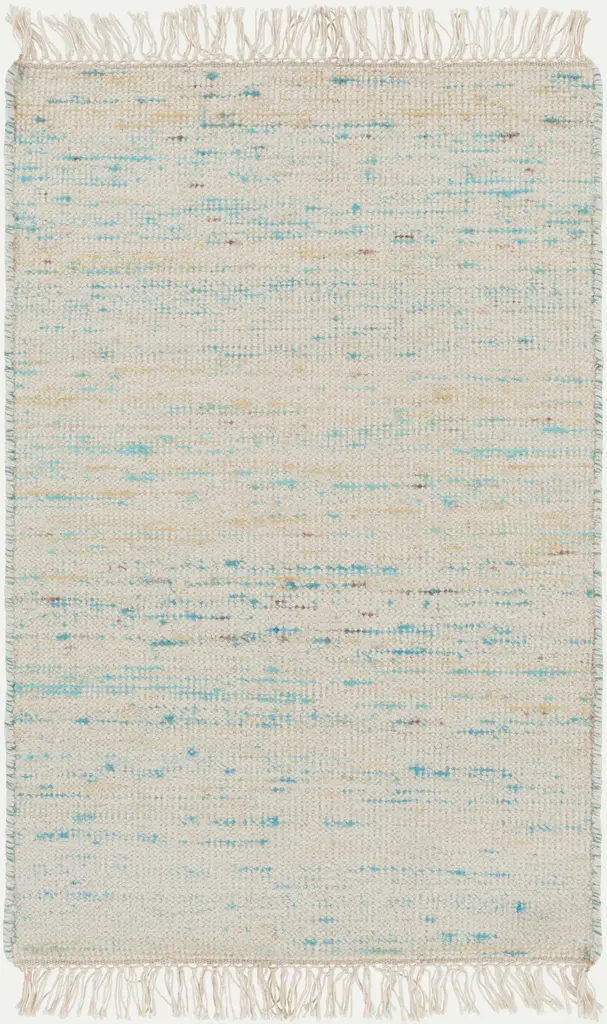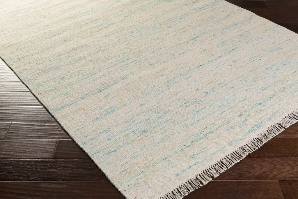 Collection: Cairnbrook Colors: Aqua, Blue, Pale Blue Construction: Hand Woven Material: Face: 60% Viscose, 40% Wool Pile: No Pile Styles: Contemporary Made In: India Thickness: 0.25" Fringe Length: 3" Price Range: $$$$$ (Affordable)