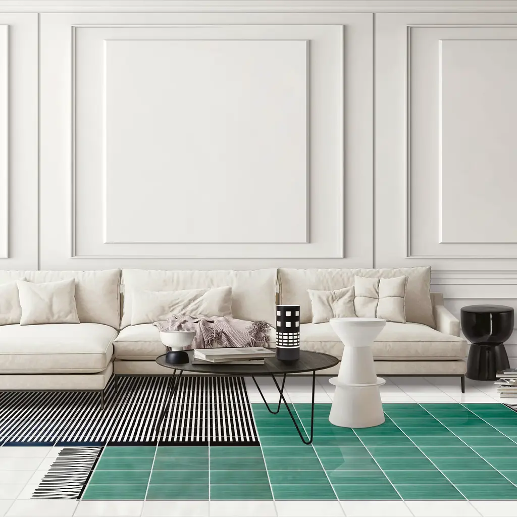 Carpet Total Green Ceramic Composition By Giuliano Andrea Dell’uva 120 X 80 With Black Border