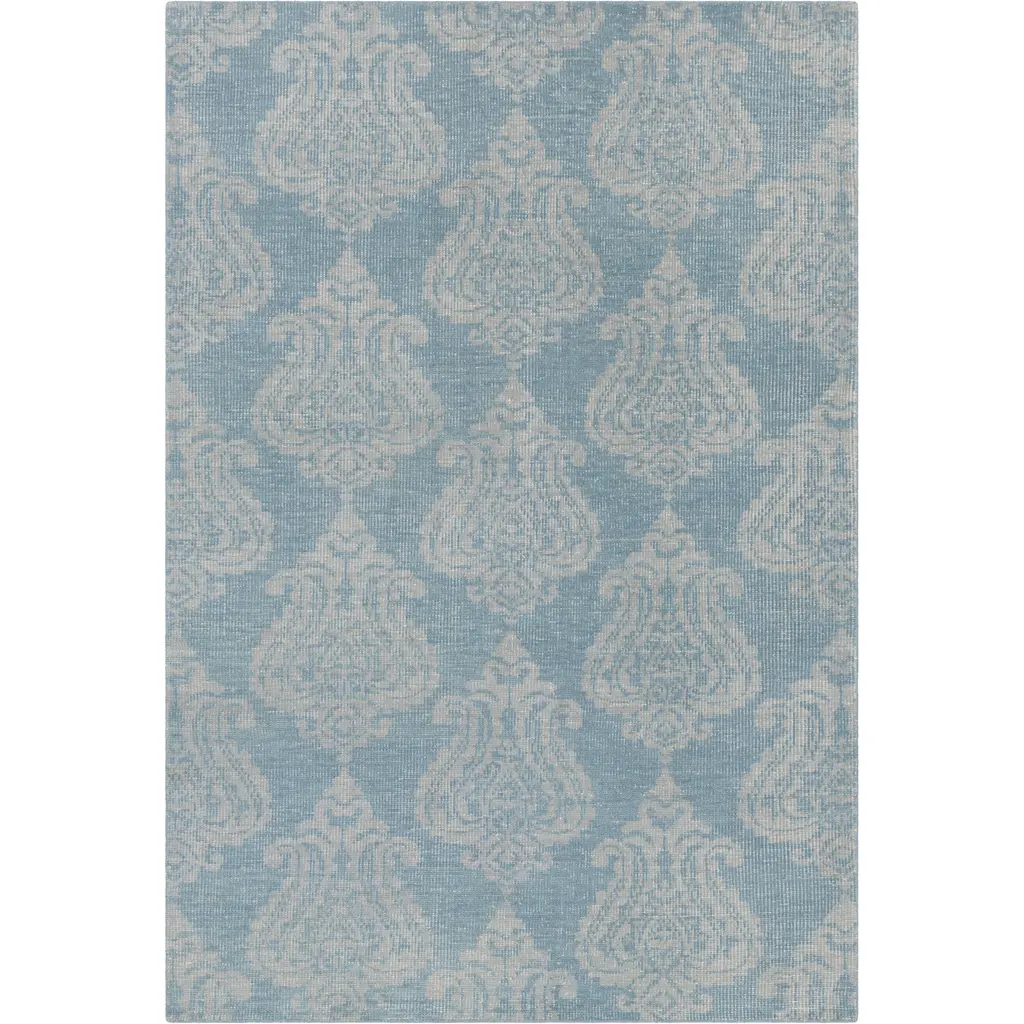 Collection: Clarklake Colors: Blue, Light Sage Construction: Hand Knotted Material: 100% Wool Pile: No Pile Styles: Transitional,Traditional Made In: India Thickness: 0.16" Price Range: $$$$$ (Affordable)