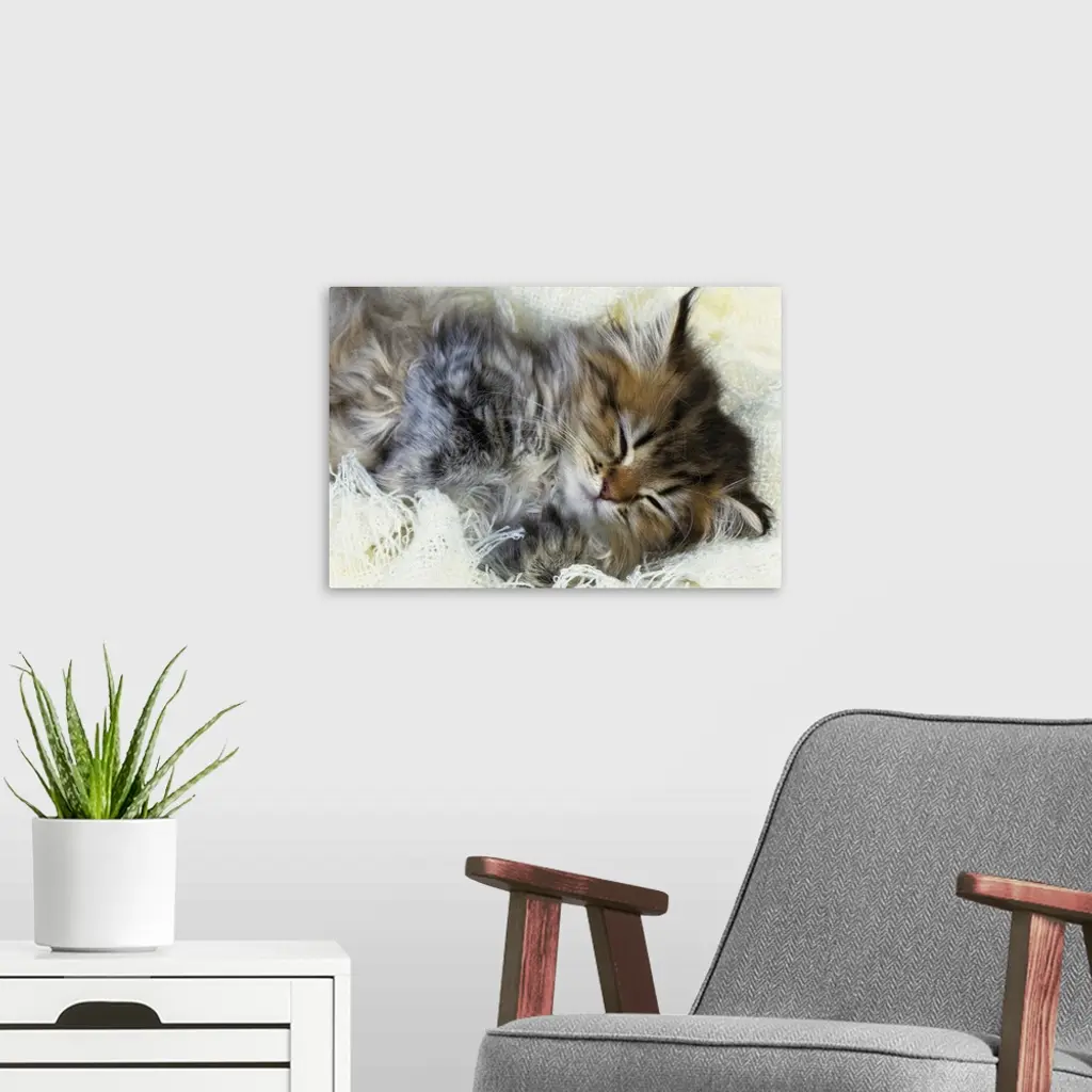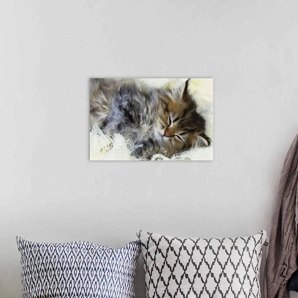 Closed Up Image Of A Sleeping Persian Cat On A White Fluffy Carpet, High Angle View