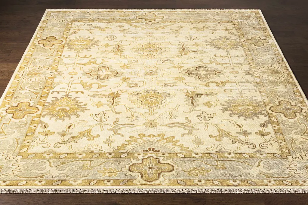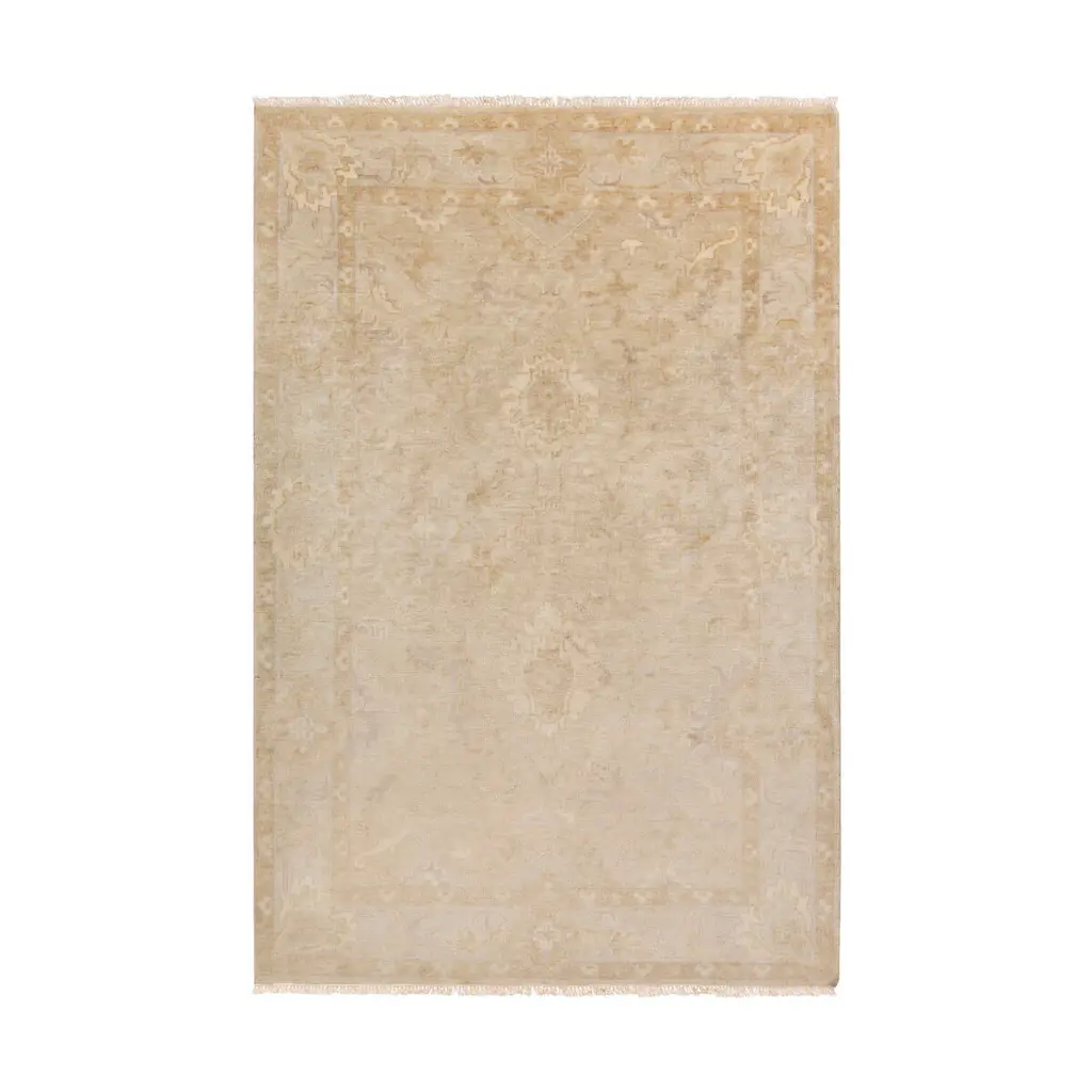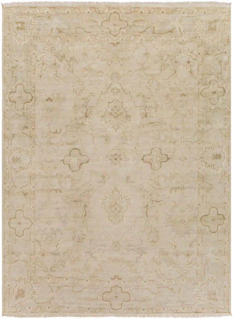 Collection: Colebrook Colors: Beige, Cream, Taupe, Tan, Peach Construction: Hand Knotted Material: 100% NZ Wool Pile: Low Pile Pile Height: 0.2" Styles: Traditional Made In: India Thickness: 0.4" Fringe Length: 1" Price Range: $$$$$ (Affordable)