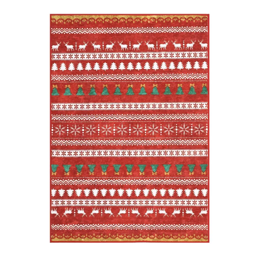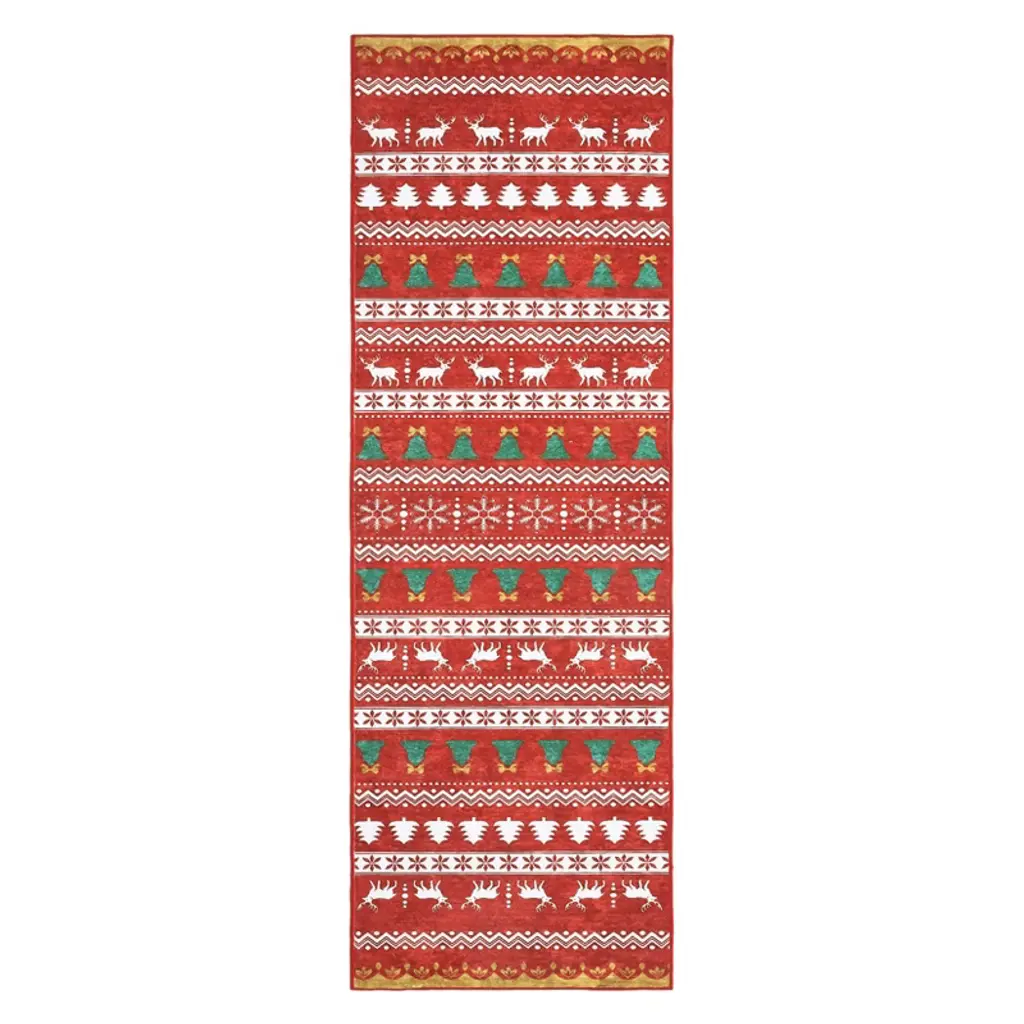 Coolmee 2'x10'christmas Area Rug Washable Soft Neutral Farmhouse Rug Indoor Floor Carpet For Bedroom Under Dining Table Home Office Red