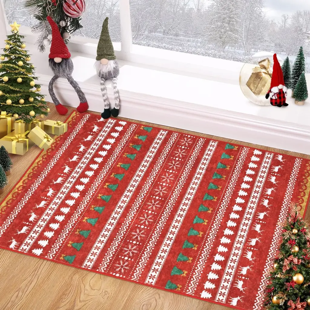 Coolmee 2'x3'christmas Area Rug Washable Soft Neutral Farmhouse Rug Indoor Floor Carpet For Bedroom Under Dining Table Home Office Red