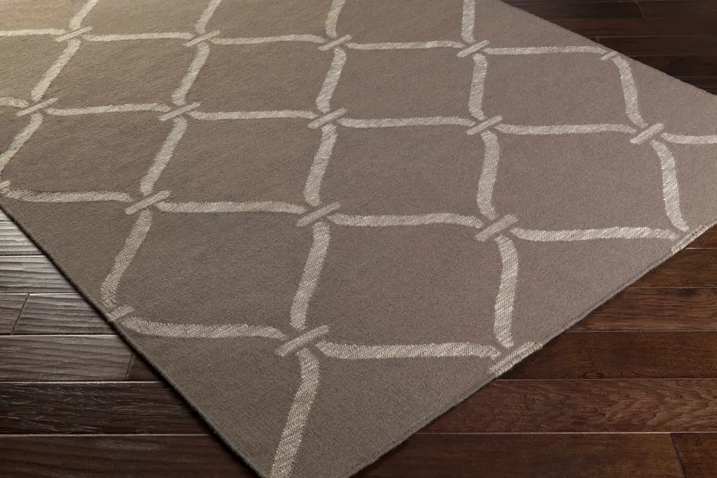 Collection: Coraopolis Colors: Taupe, Light Gray Construction: Hand Woven Material: 50% Wool,30% Viscose,20% Cotton Pile: No Pile Styles: Transitional Made In: India Thickness: 0.16" Price Range: $$$$$ (Affordable)