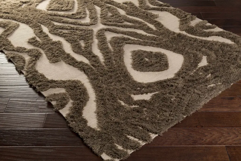Collection: Dailey Colors: Medium Brown, Dark Red Construction: Hand Woven Material: 100% Wool Pile: Plush Pile Pile Height: 1.3" Styles: Natural Fibers Made In: India Thickness: 1.3" Price Range: $$$$$ (Affordable)