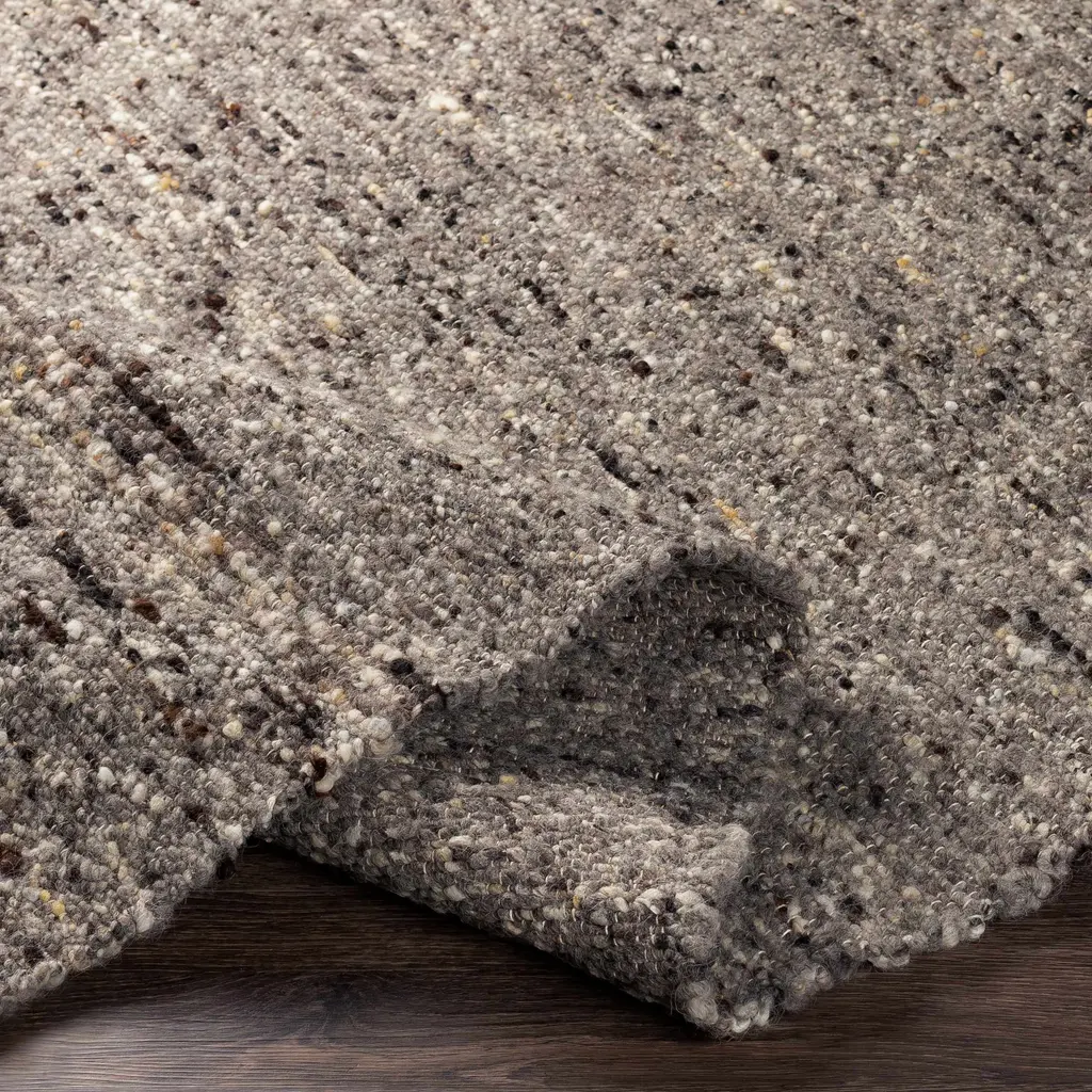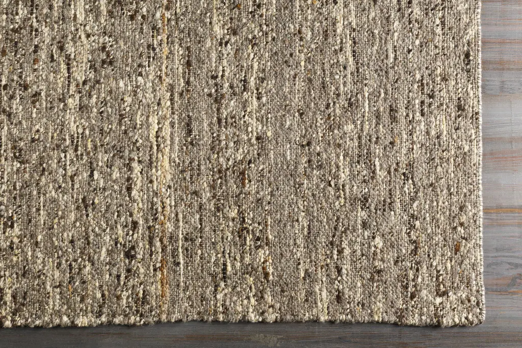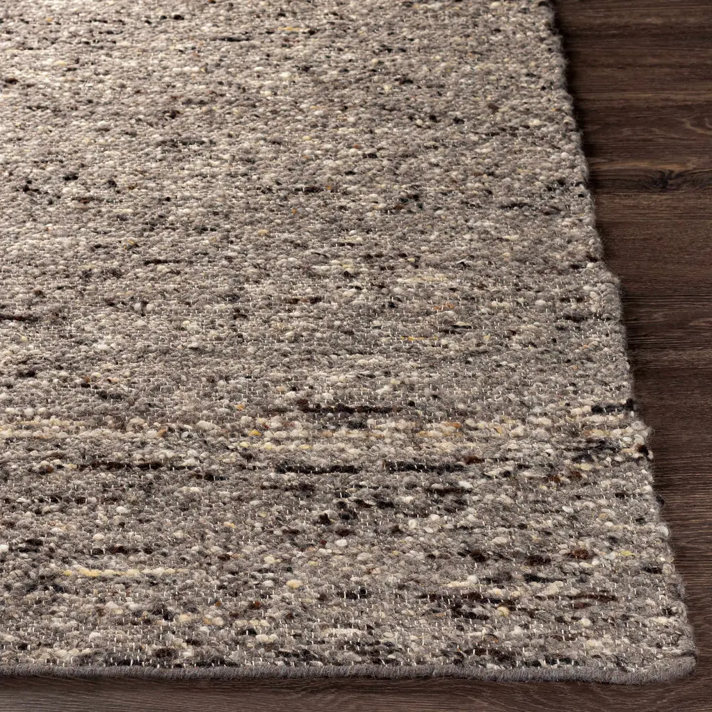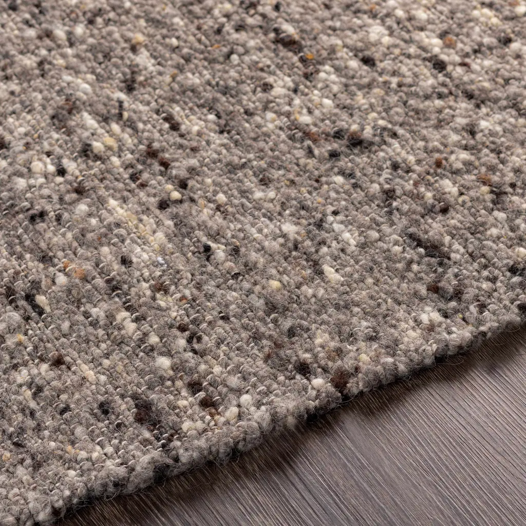 Collection: Deseronto Colors: Charcoal, Cream, Dark Brown, Medium Gray, Light Brown Construction: Hand Woven Material: 100% Wool Pile: No Pile Styles: Contemporary Made In: India Thickness: 0.43" Price Range: $$$$$ (Affordable)
