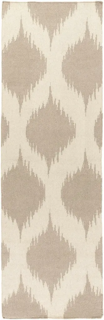 Collection: Deshler Colors: Taupe, Peach Construction: Hand Woven Material: 100% Wool Pile: No Pile Styles: Transitional,Bohemian Made In: India Thickness: 0.16" Price Range: $$$$$ (Most Affordable)